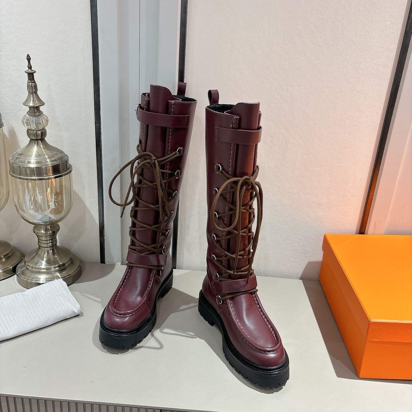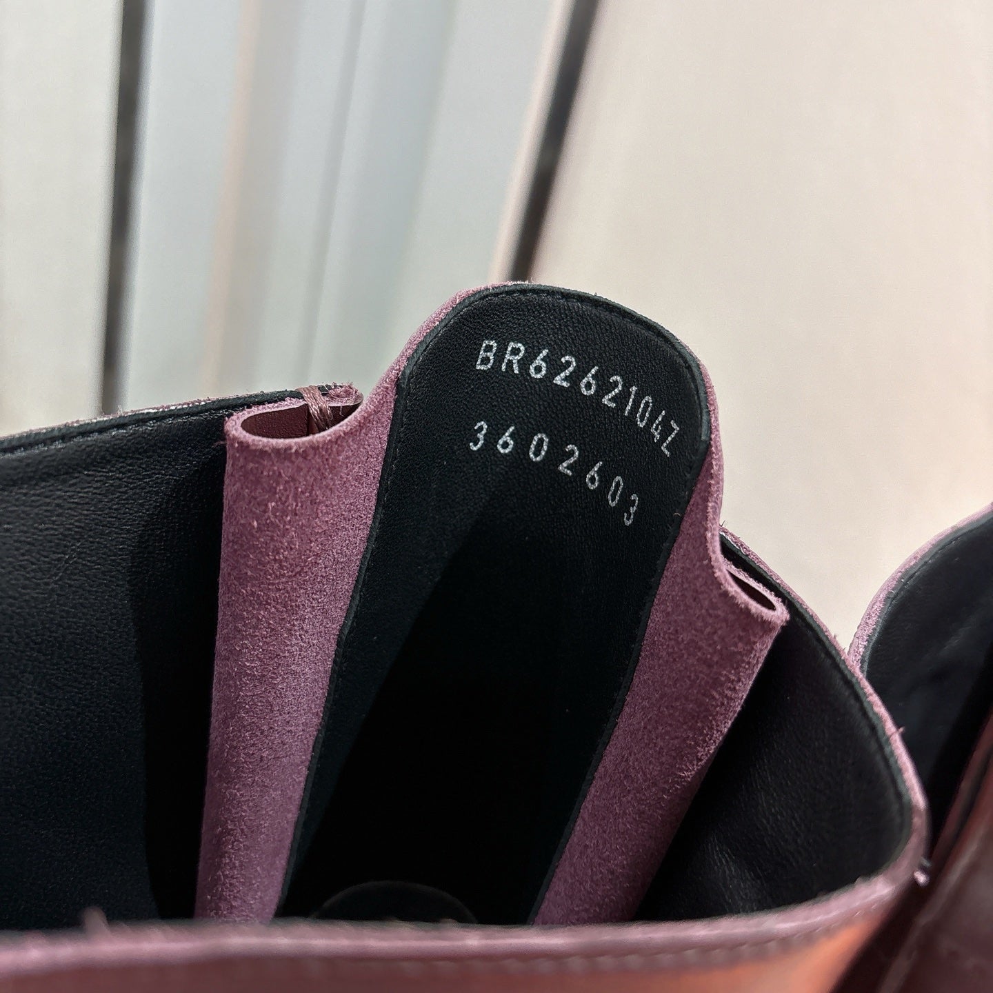 HM Lace Up Boots 25mm Belt Buckle Mauve Brown Leather 466590