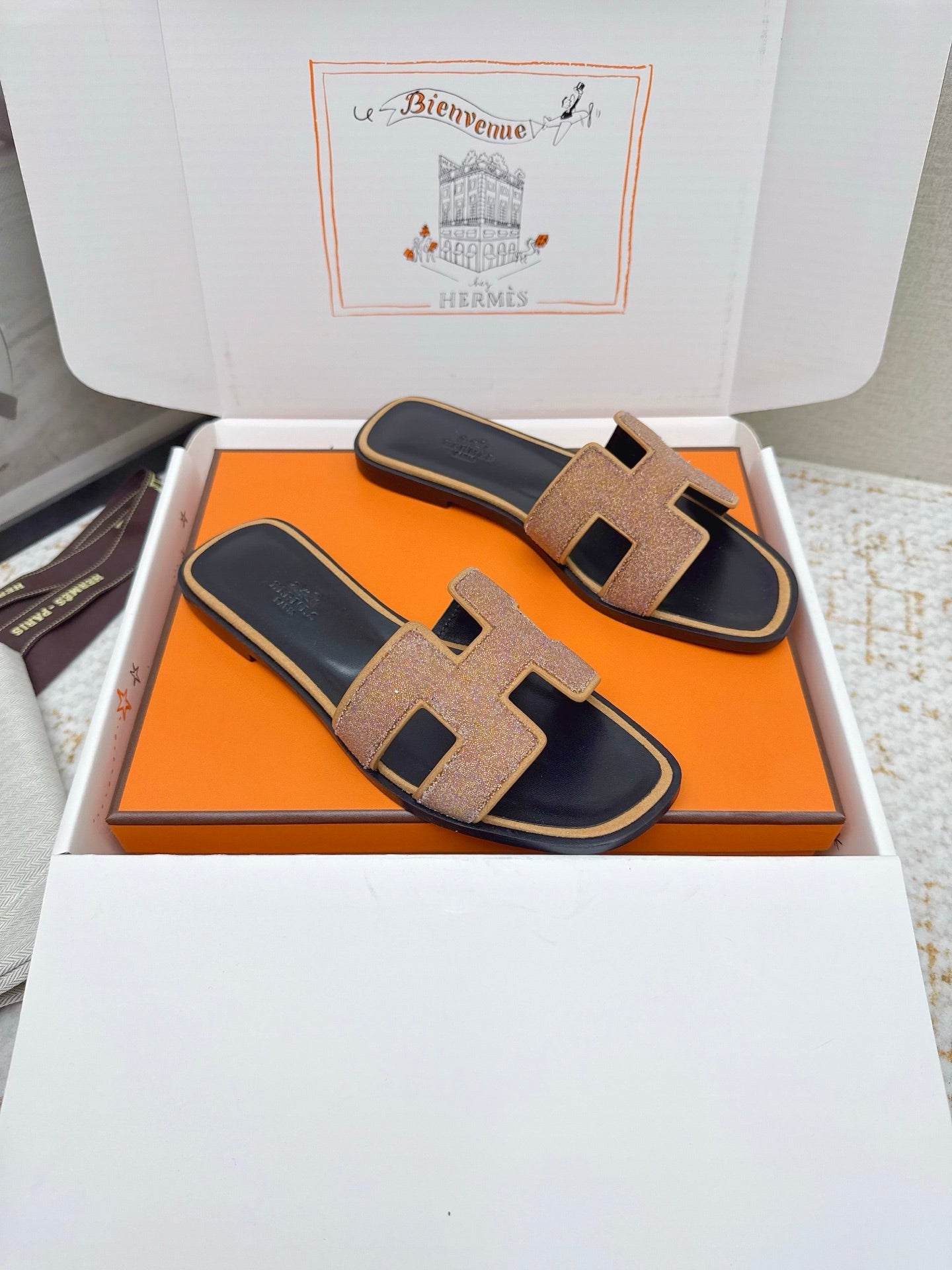 HM Oasis Sandals Black Brown Suede Cowhide 625264