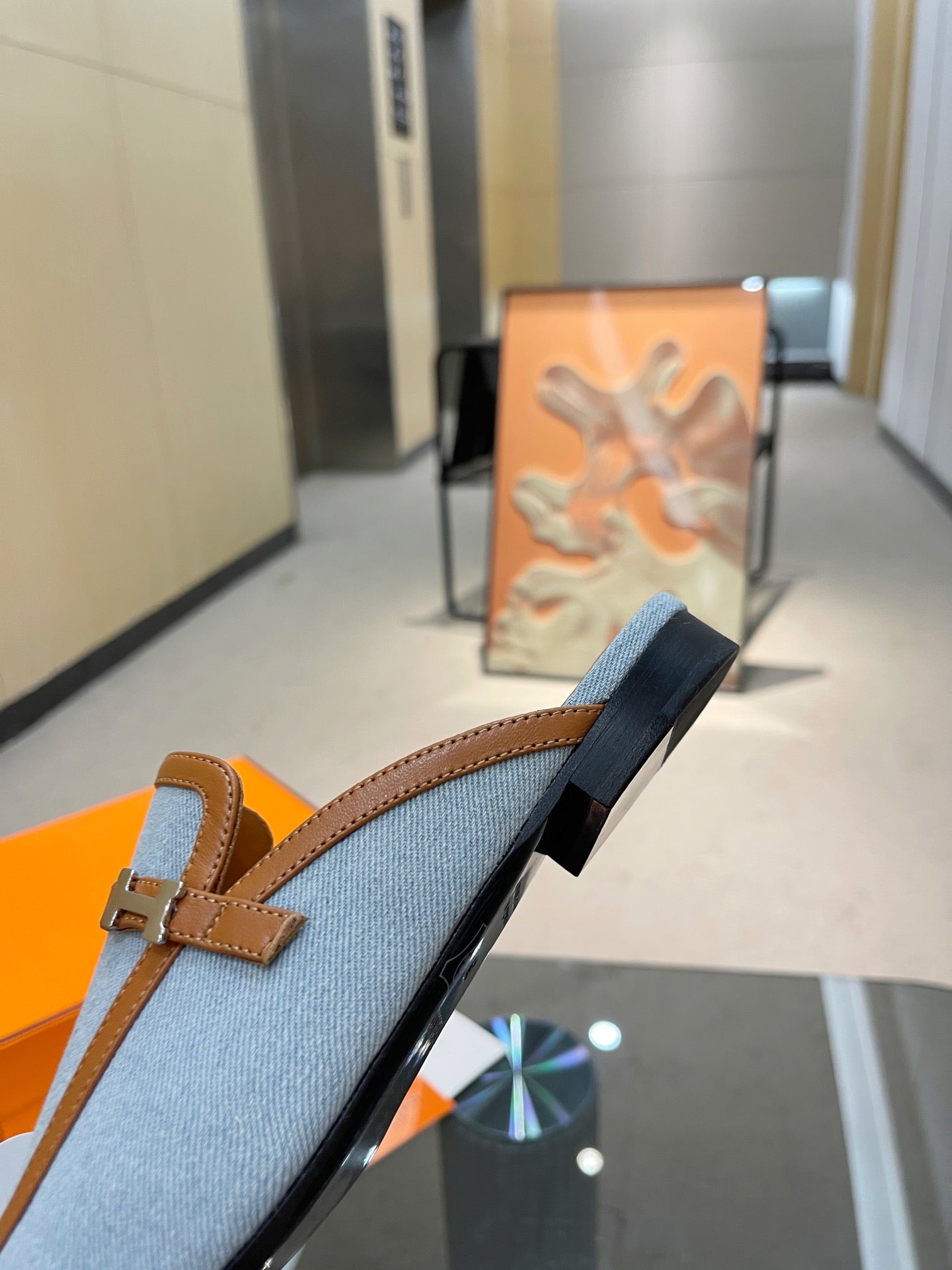 CHYPRE SANDAL LAPIS MIX ORANGE LAMBSKIN WITH H BUCKLE