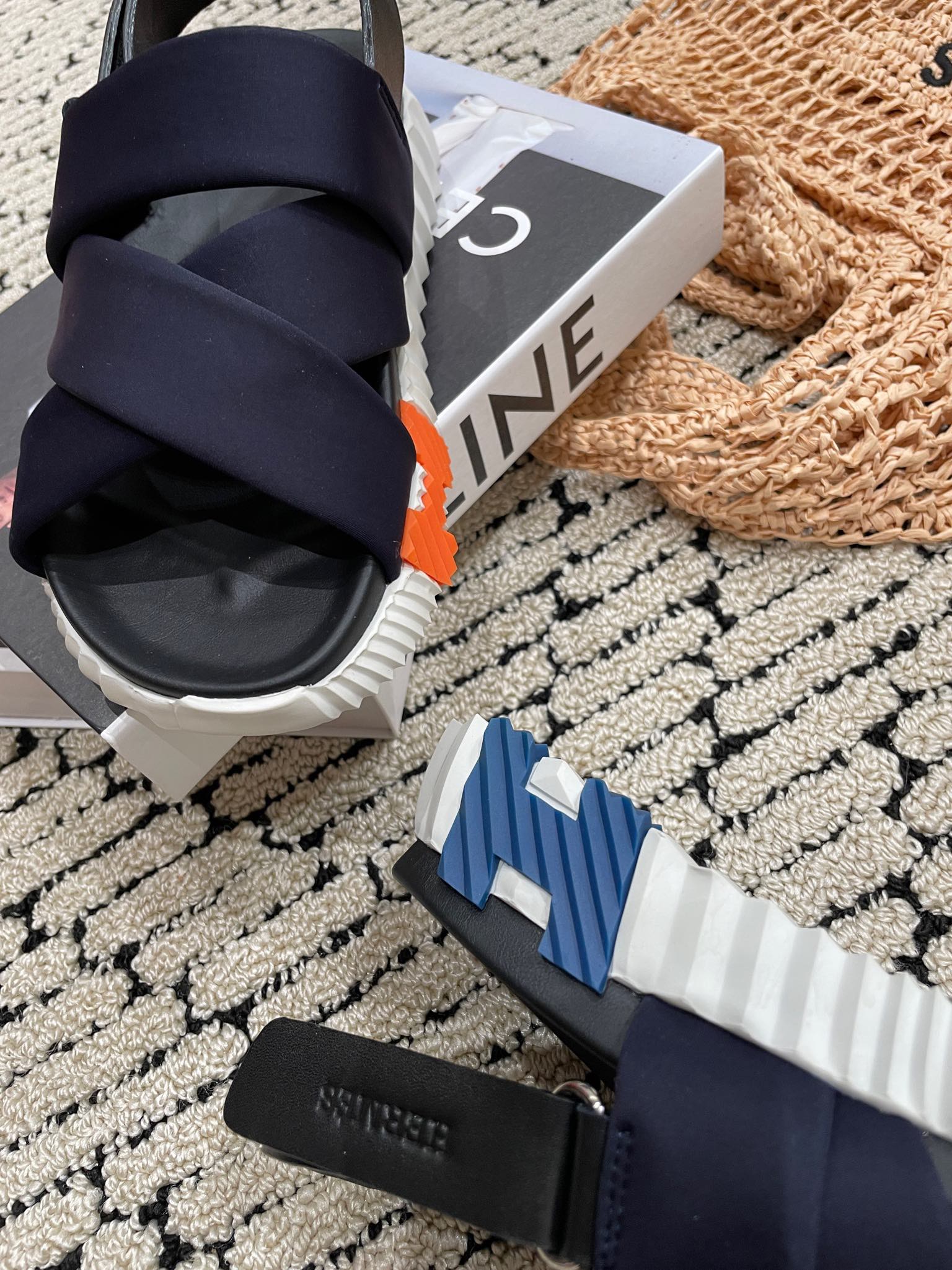 ELECTRIC SANDAL BLACK MIX NAVY CALFSKIN