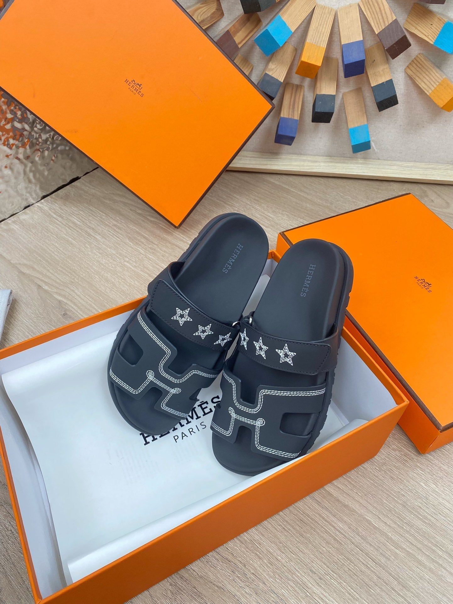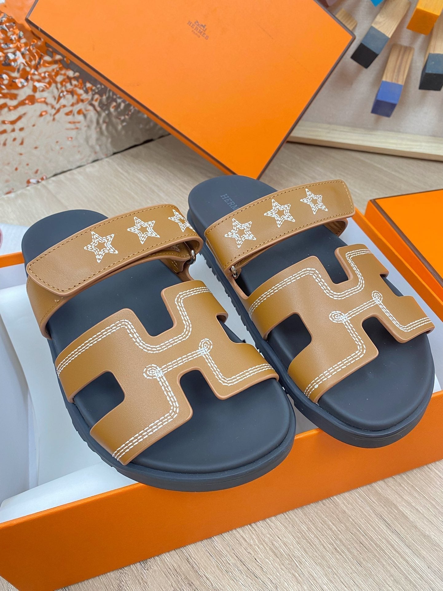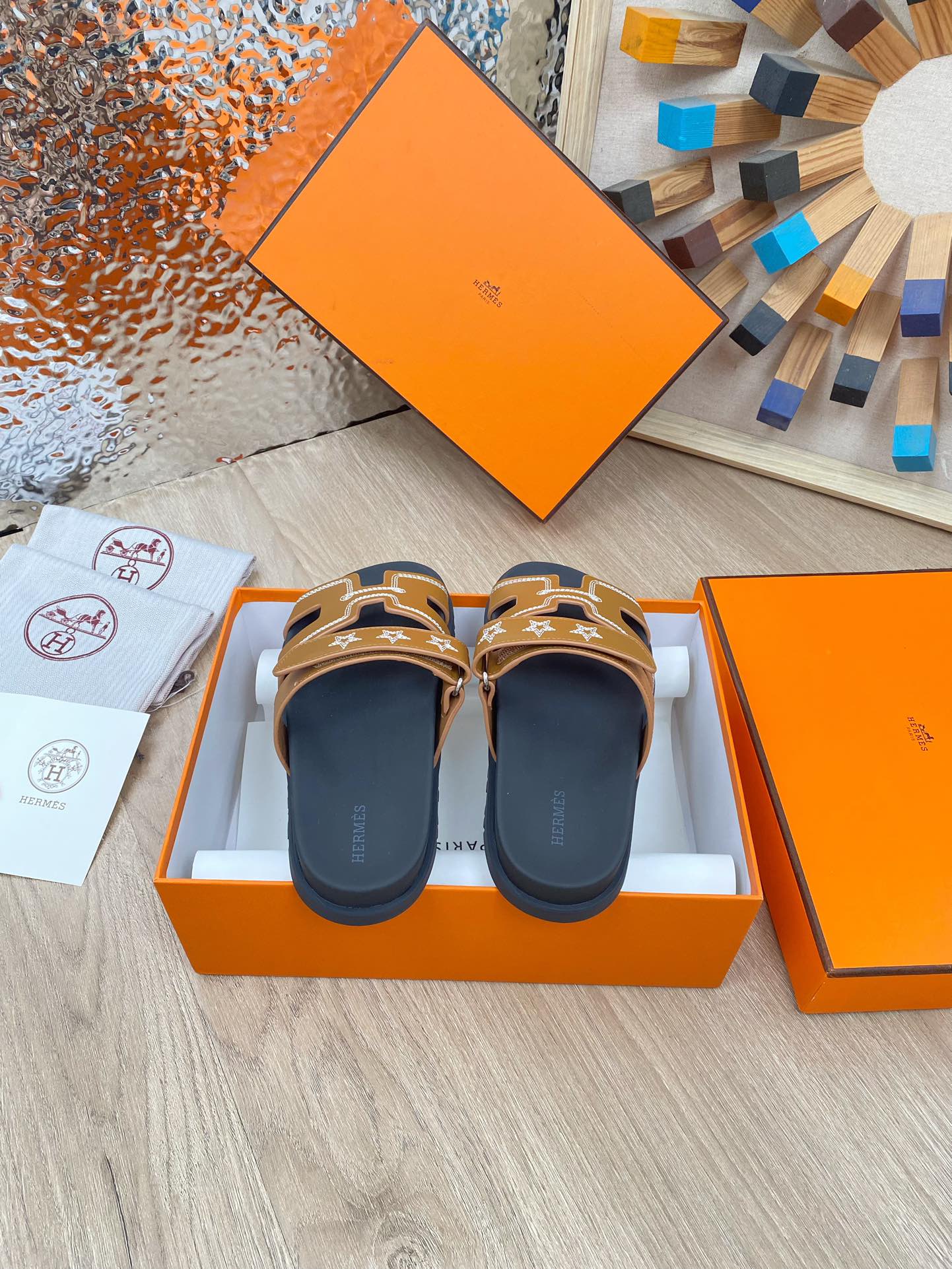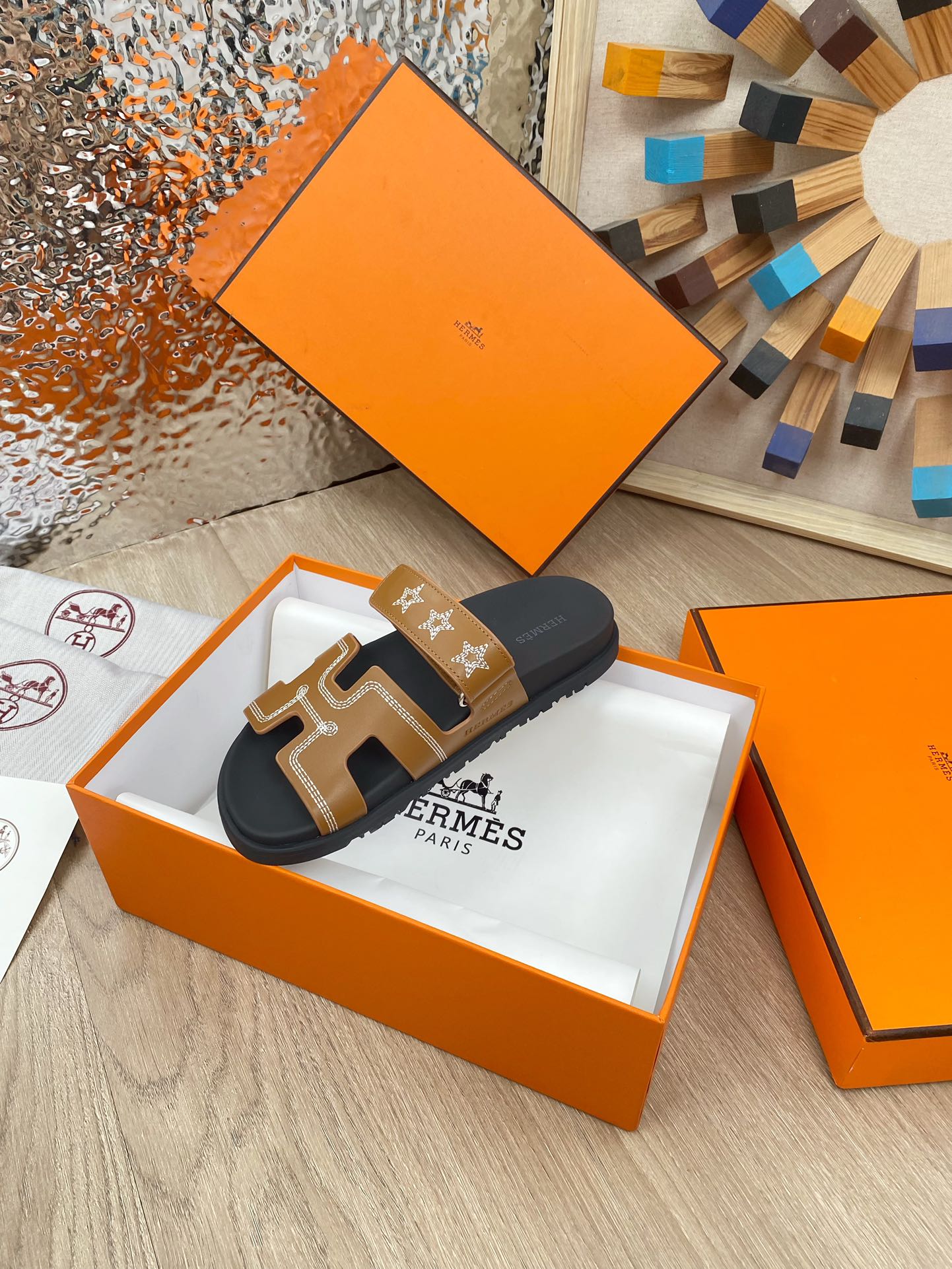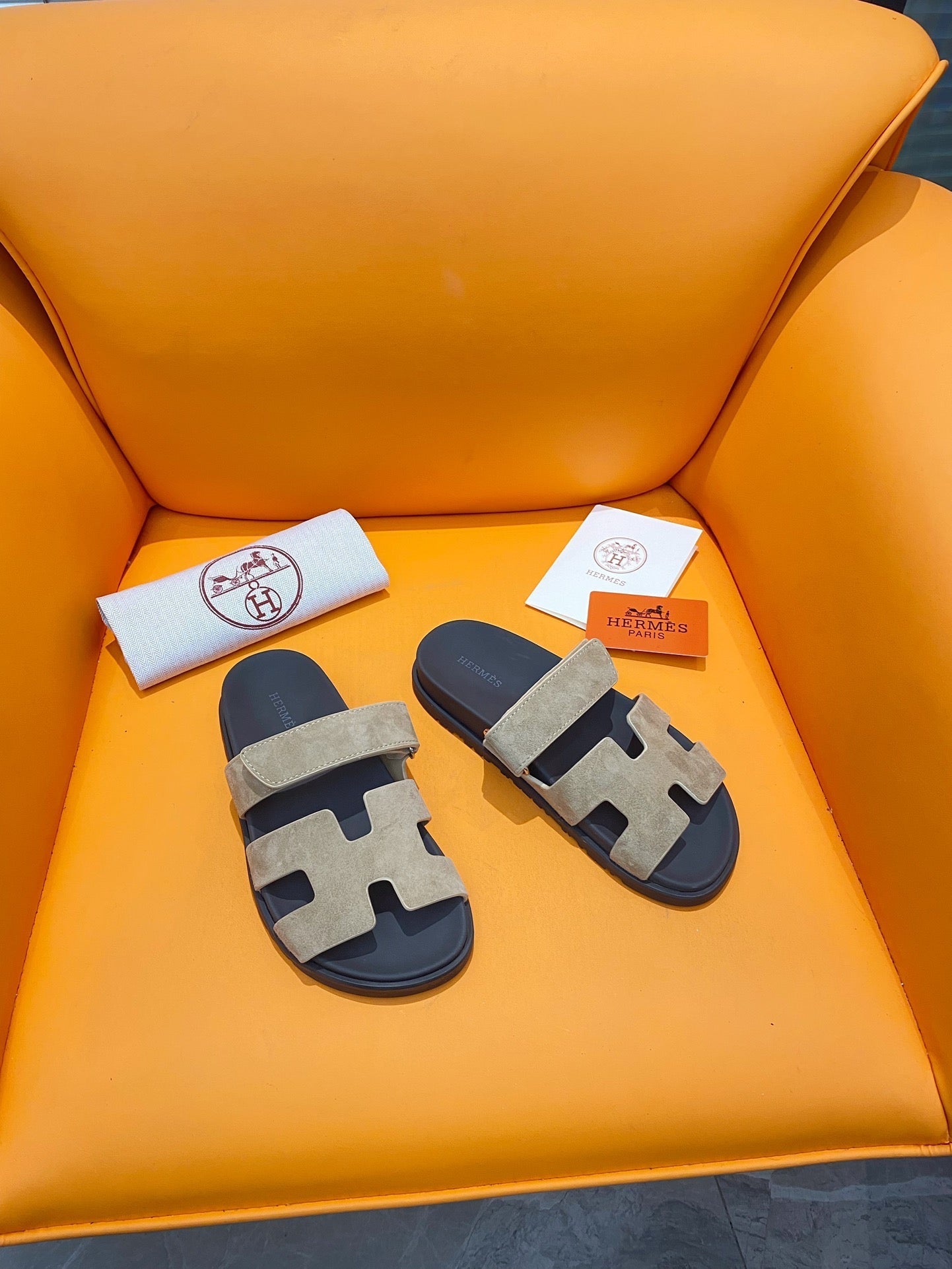 chypre sandal pinkish beige suede calfskin white thread embroidered