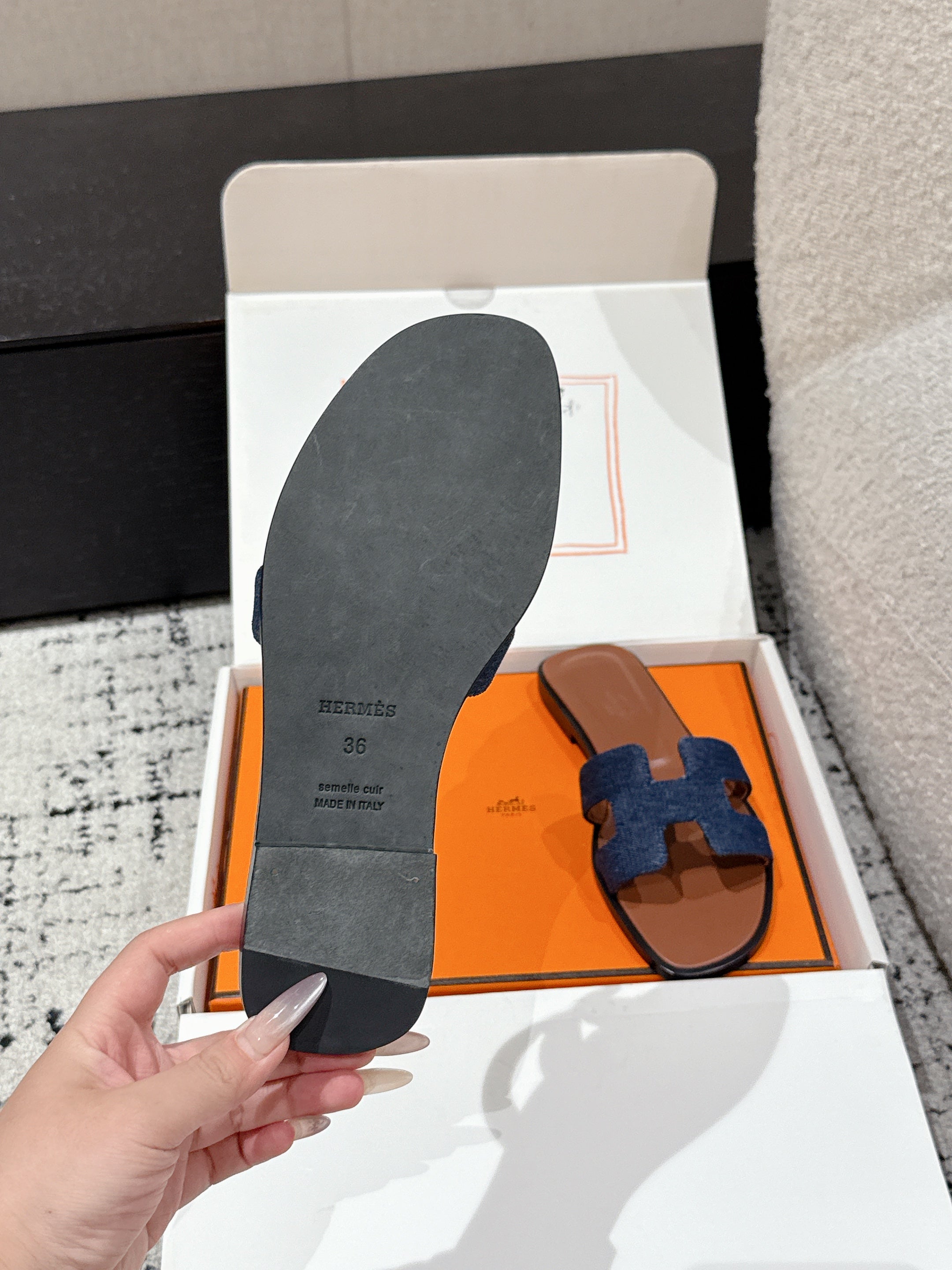 HM 25 Oran Sandal White Calfskin Blue Denim