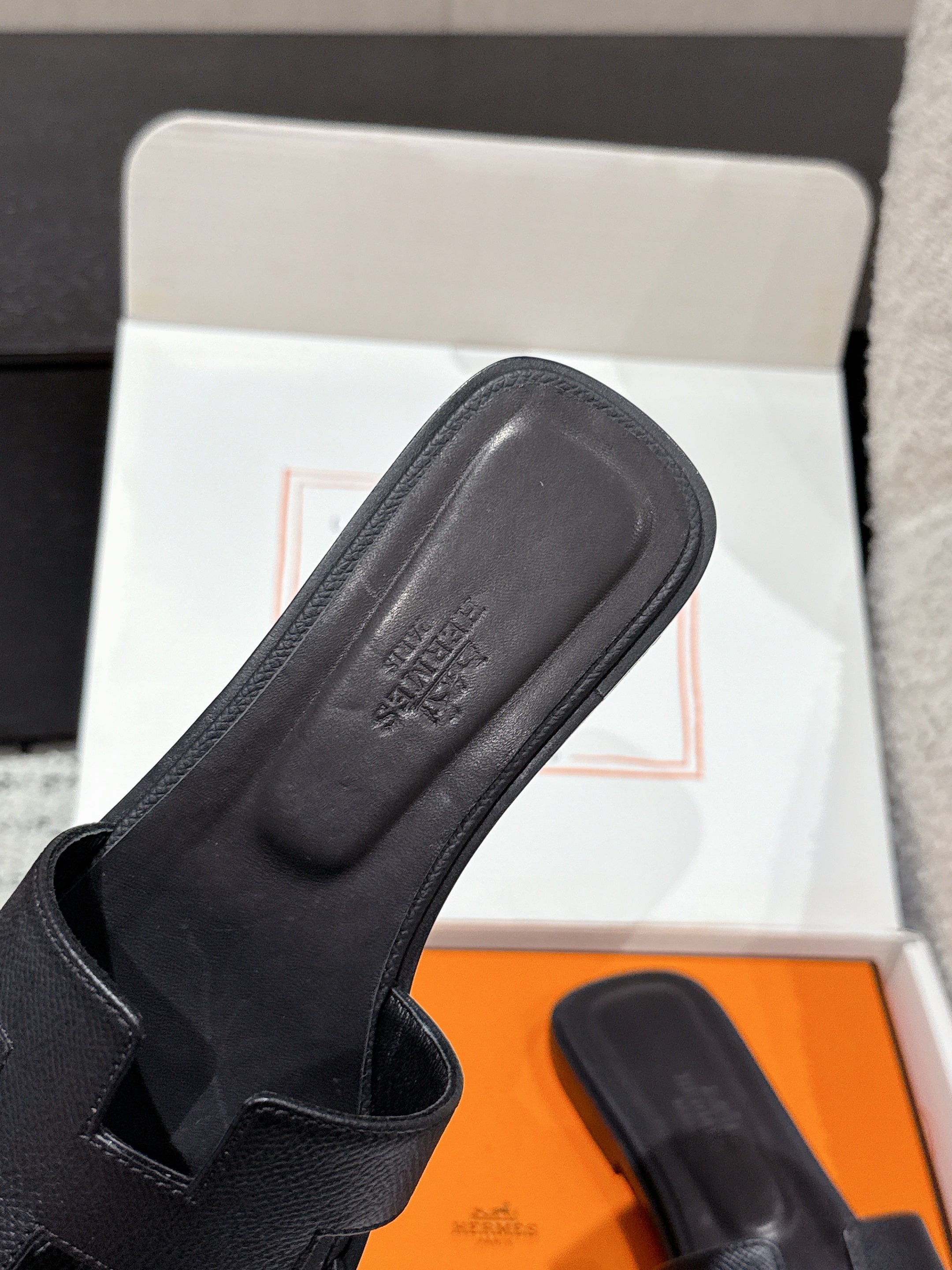 HM 25 Oran Sandal Black Epsom Etoupe Calfskin