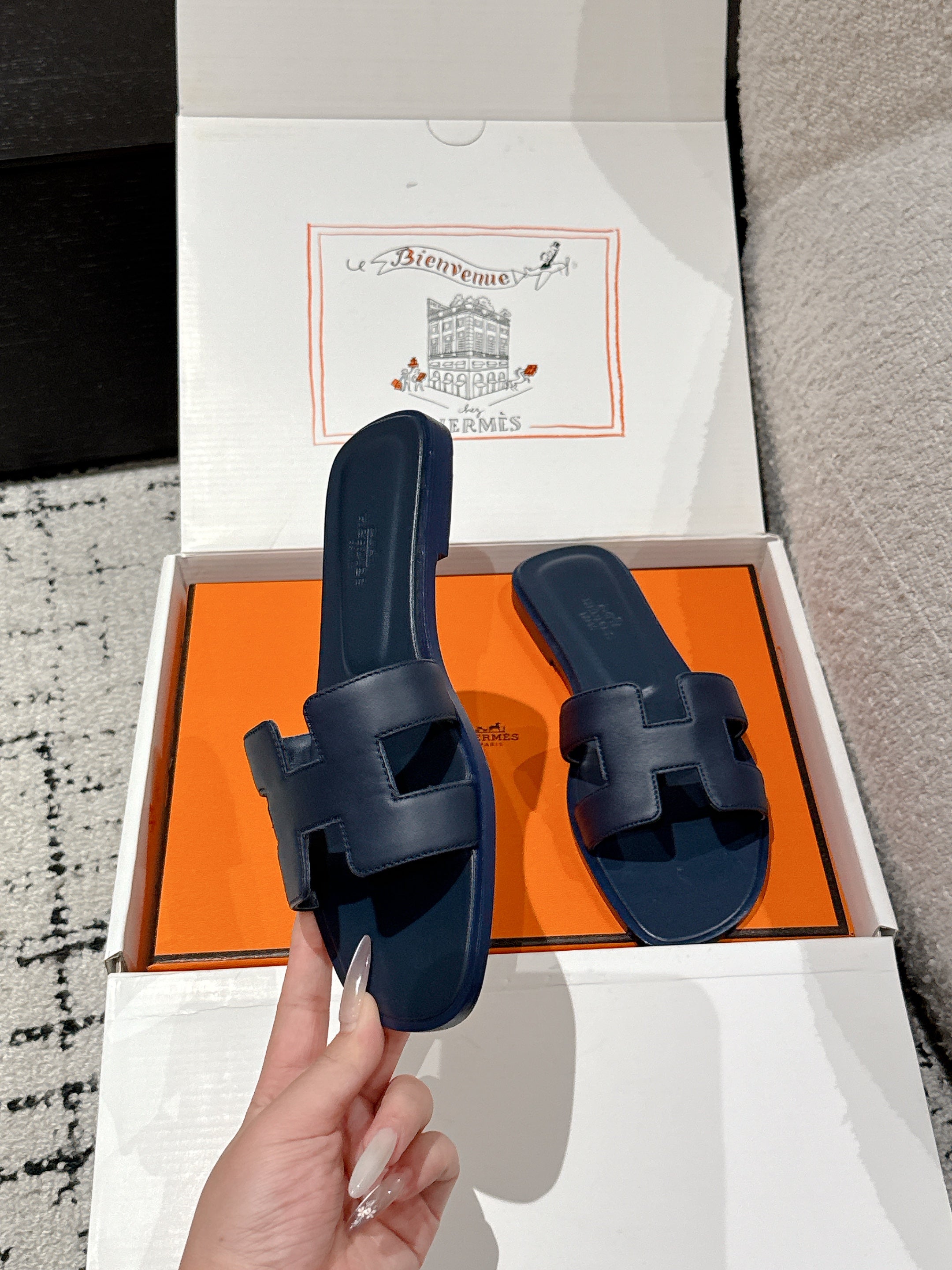 HM 25 Oran Sandal Dark Blue Calfskin