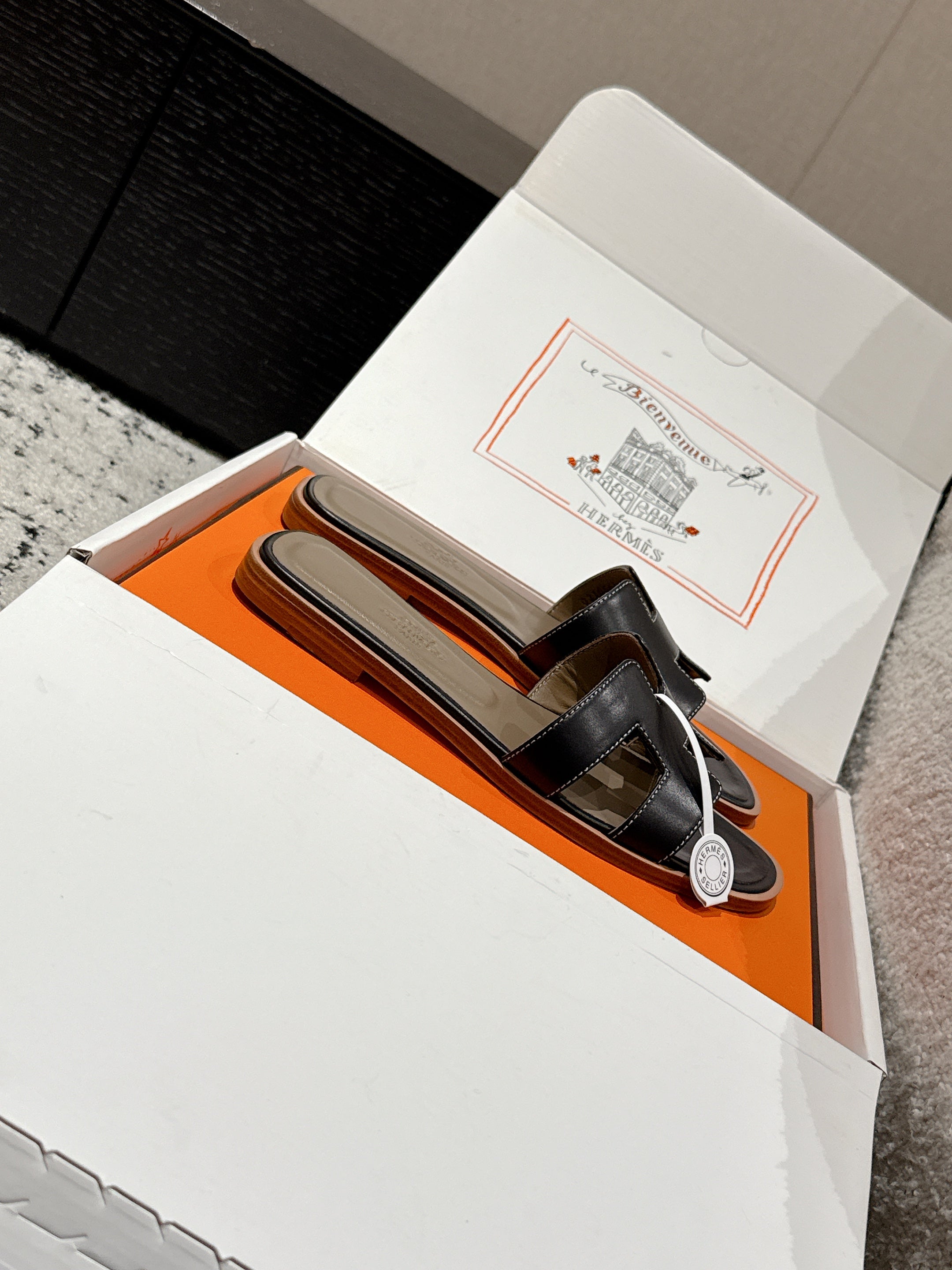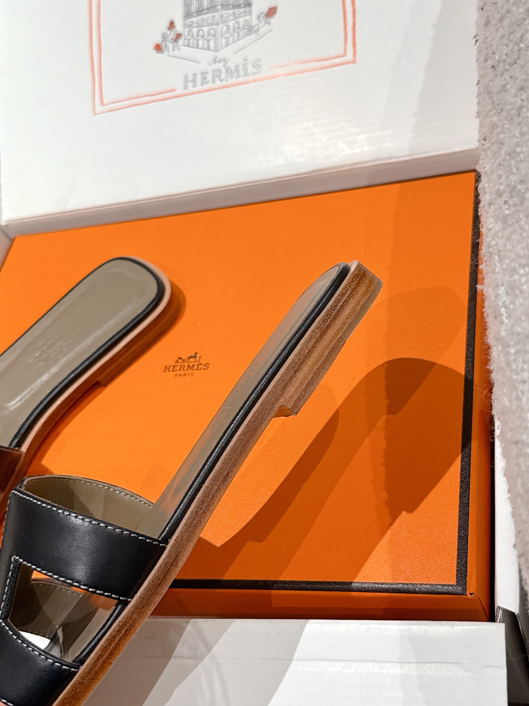 HM 25 Oran Sandal Black Etoupe Calfskin
