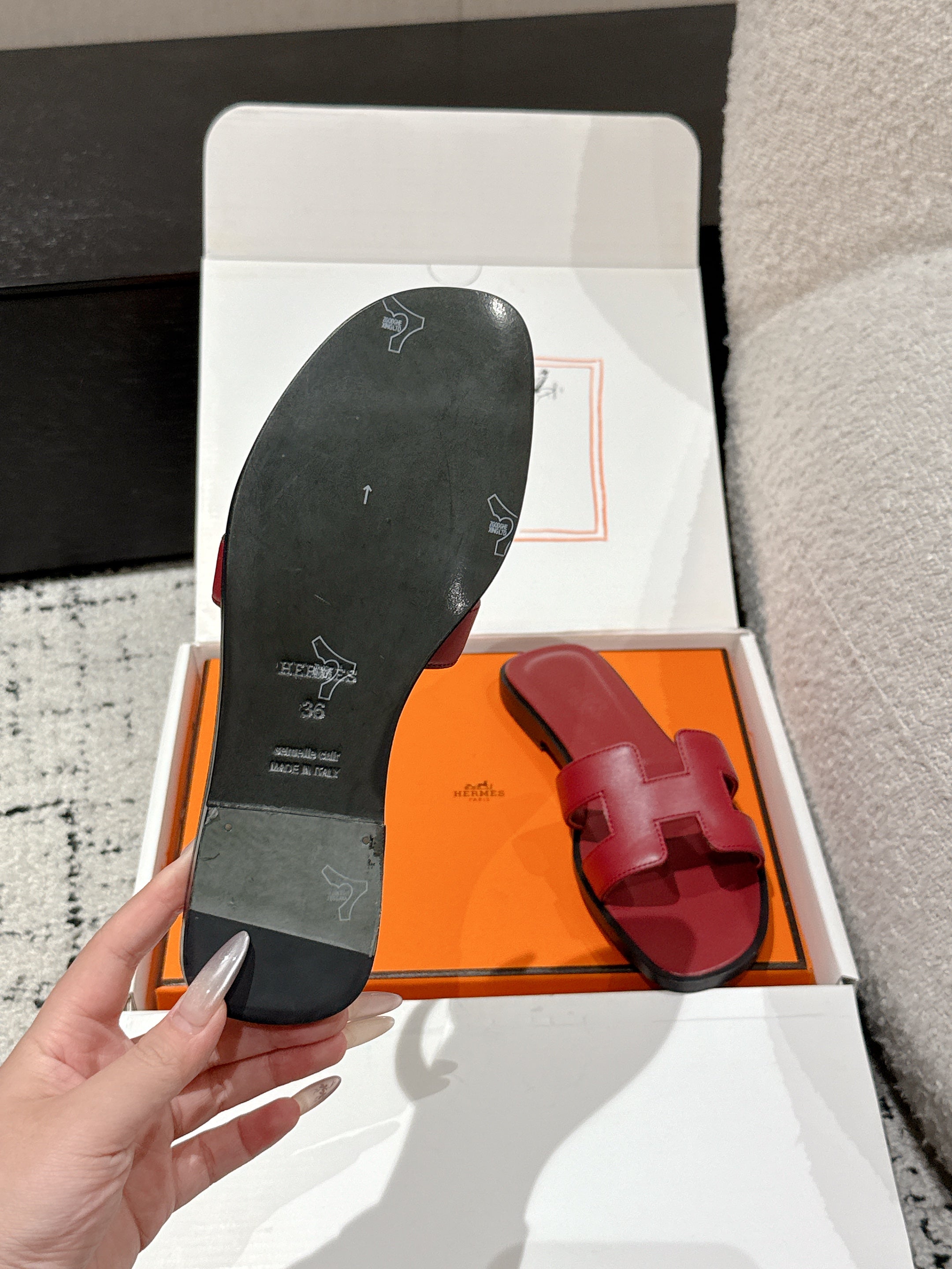 HM 25 Oran Sandal Dard Red Black Calfskin