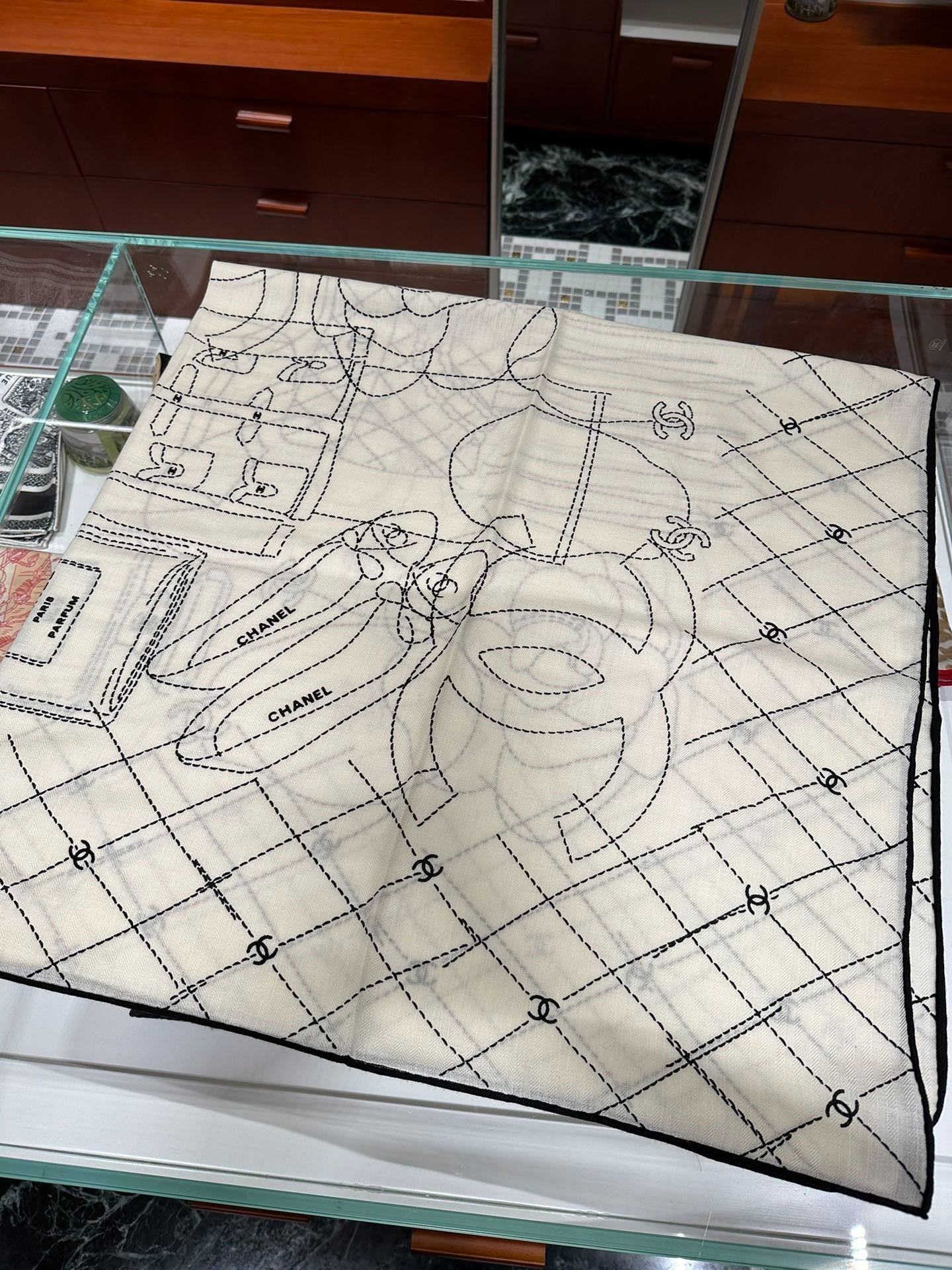 CHANEL 25S SCARF 140 IN SILK WOOL 726478