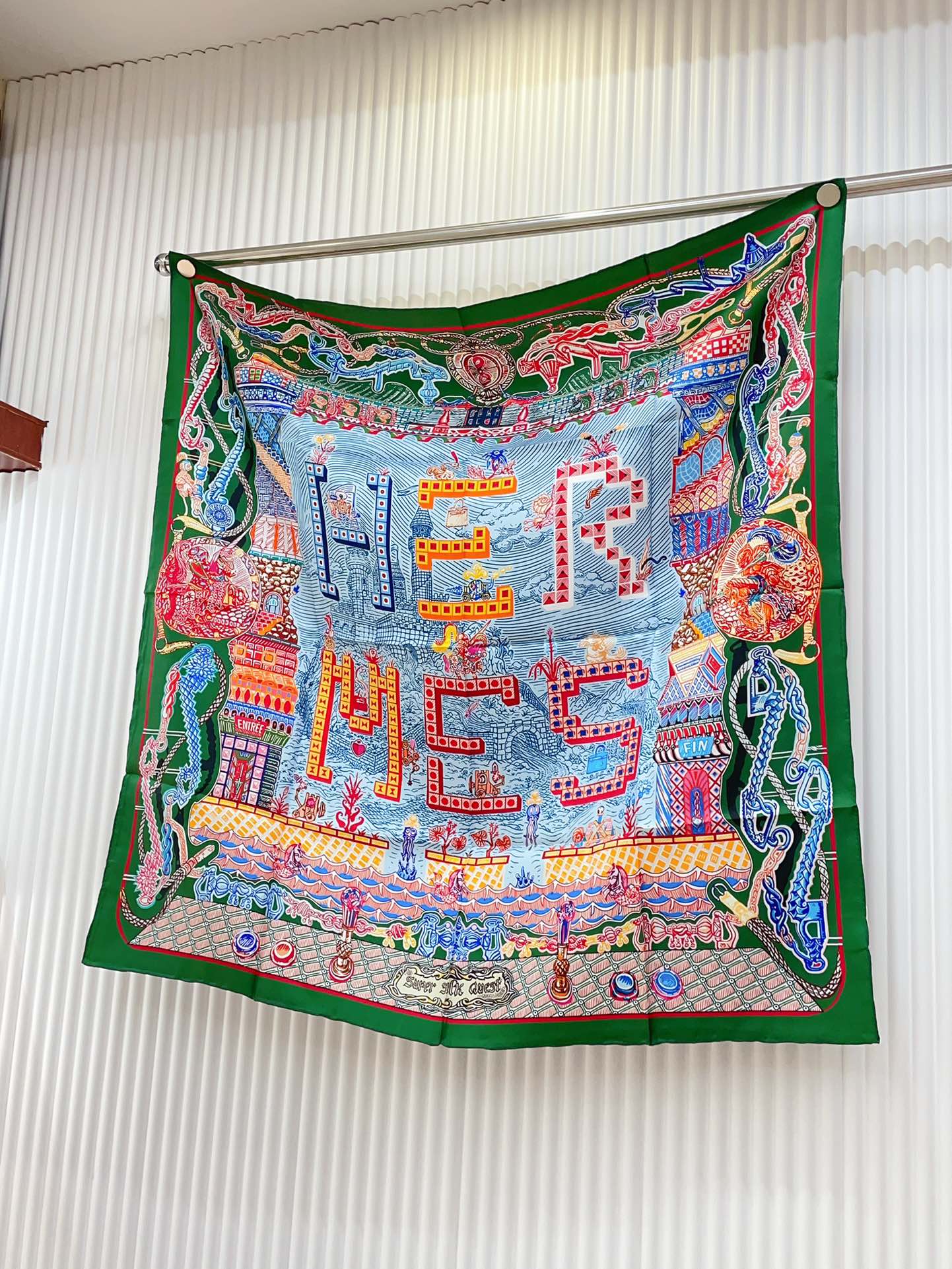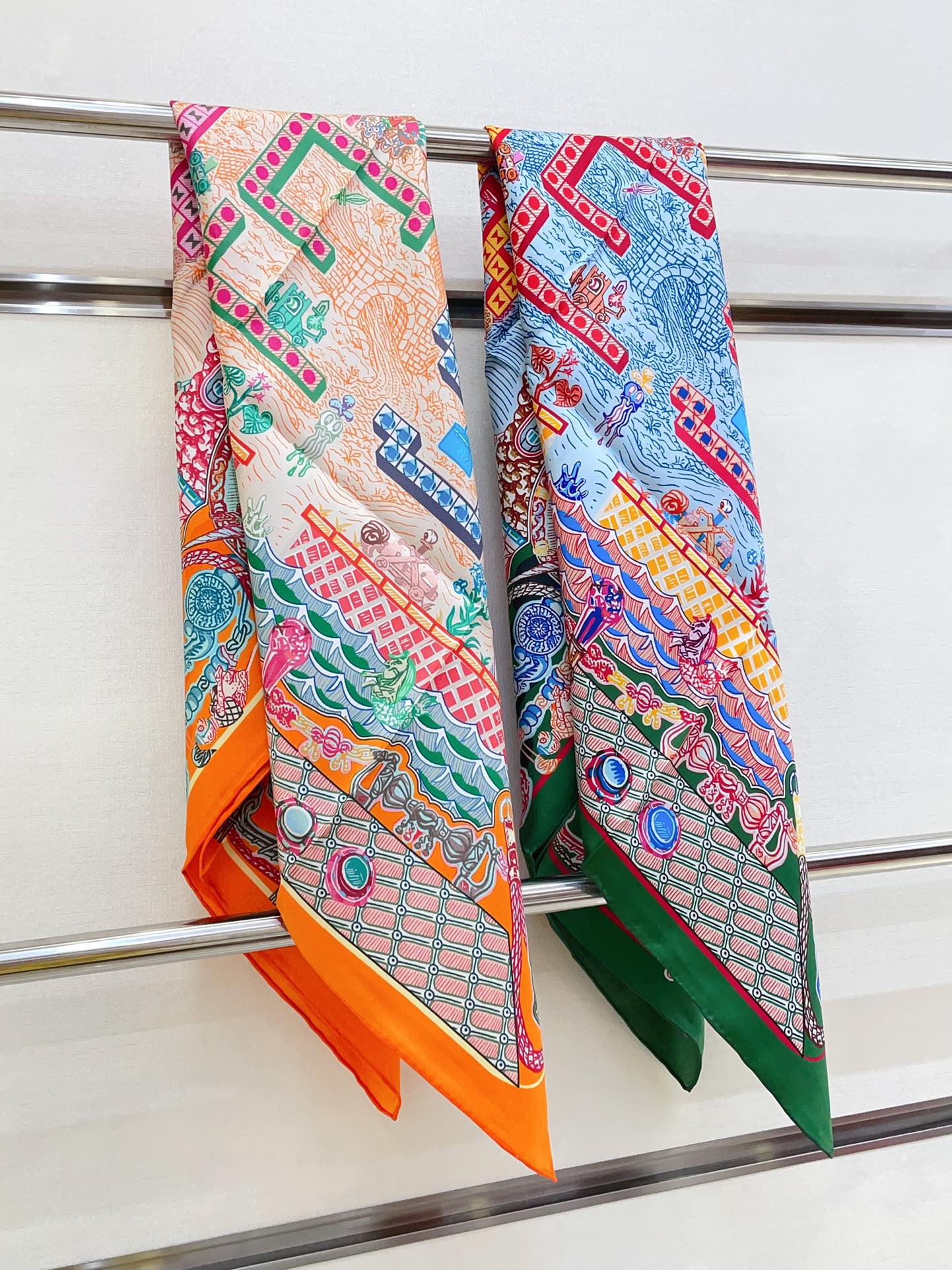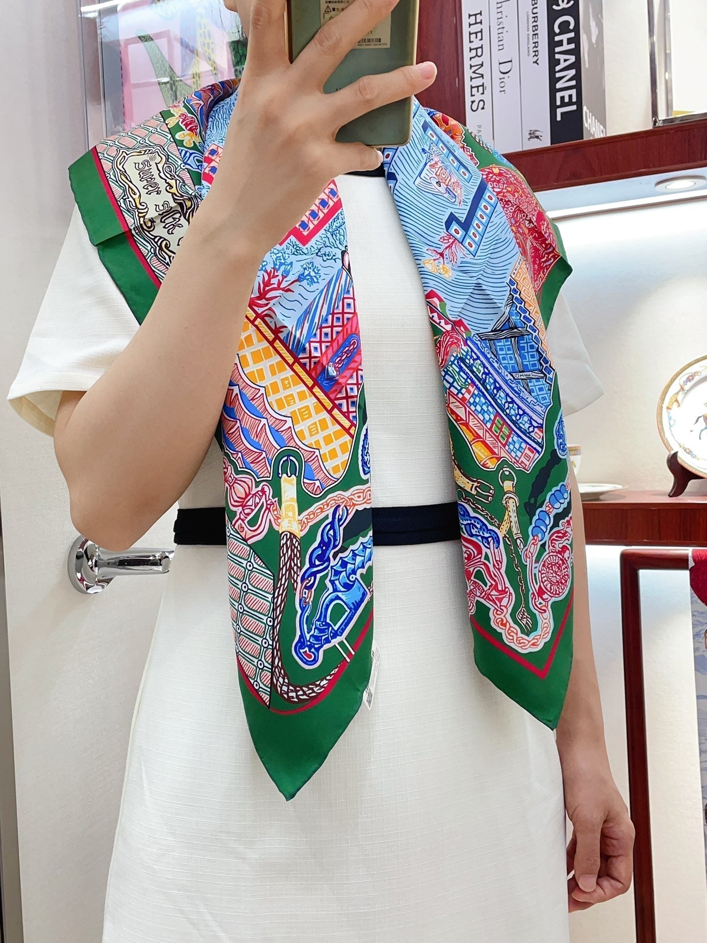 Gavroche Super Silk Quest Détail Scarf 90 CM In Green Colorful Silk Twill 274213