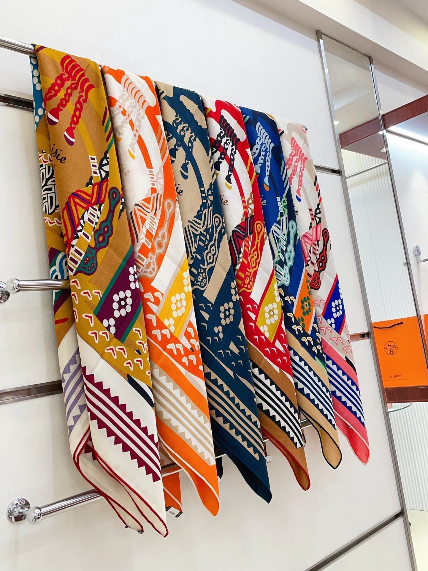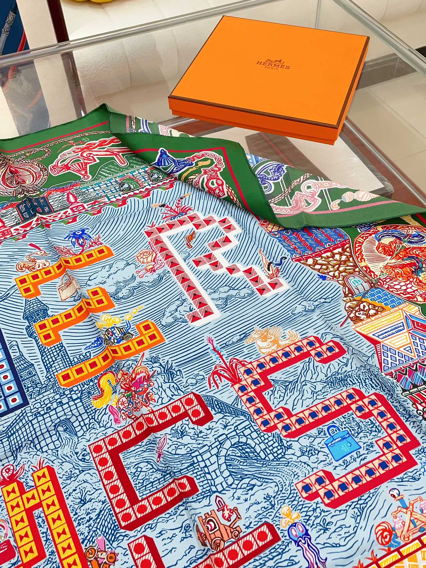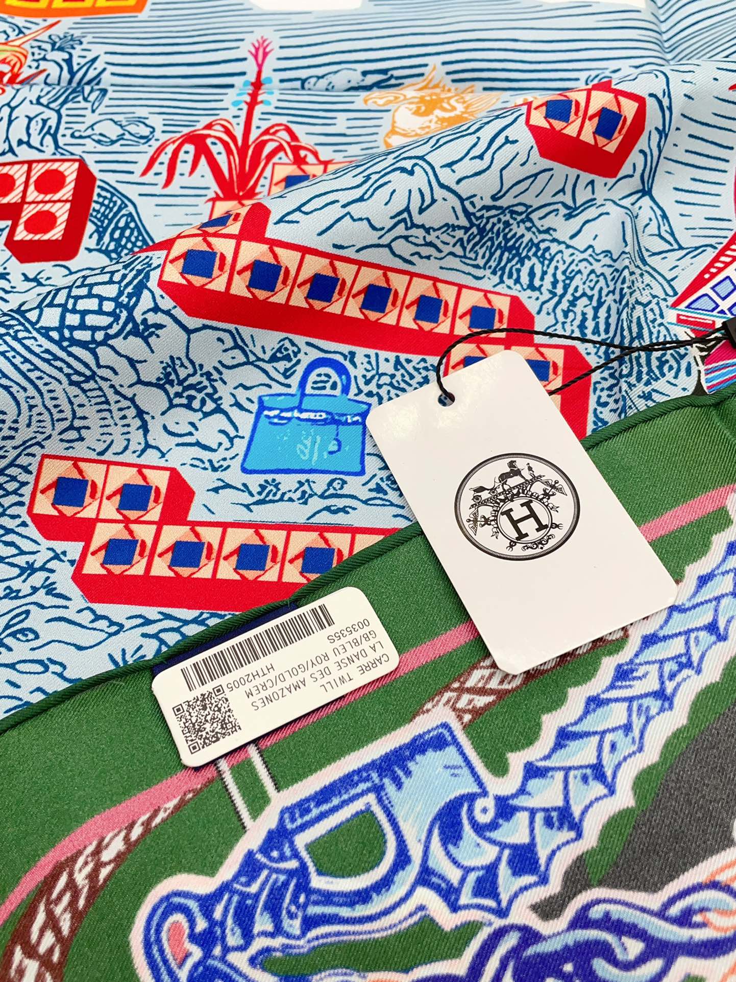 Gavroche Super Silk Quest Détail Scarf 90 CM In Green Colorful Silk Twill 274213
