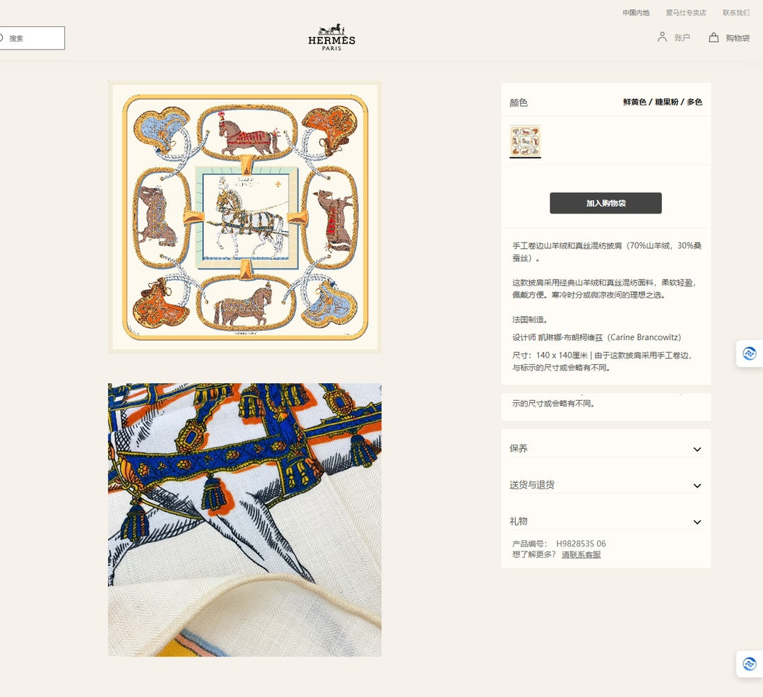 - Material: 70% Cashmere, 30% Silk