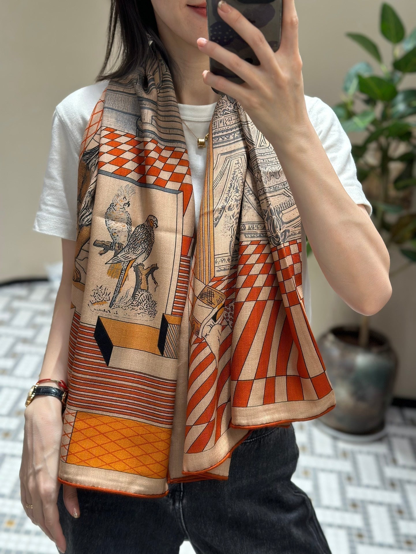 Grand Theatre Nouveau Scarf 140 CM In Orange Colorful Silk 385352