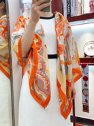 Haute Parure Scarf 135 CM In Orange Colorful Cashmere And Silk 324754