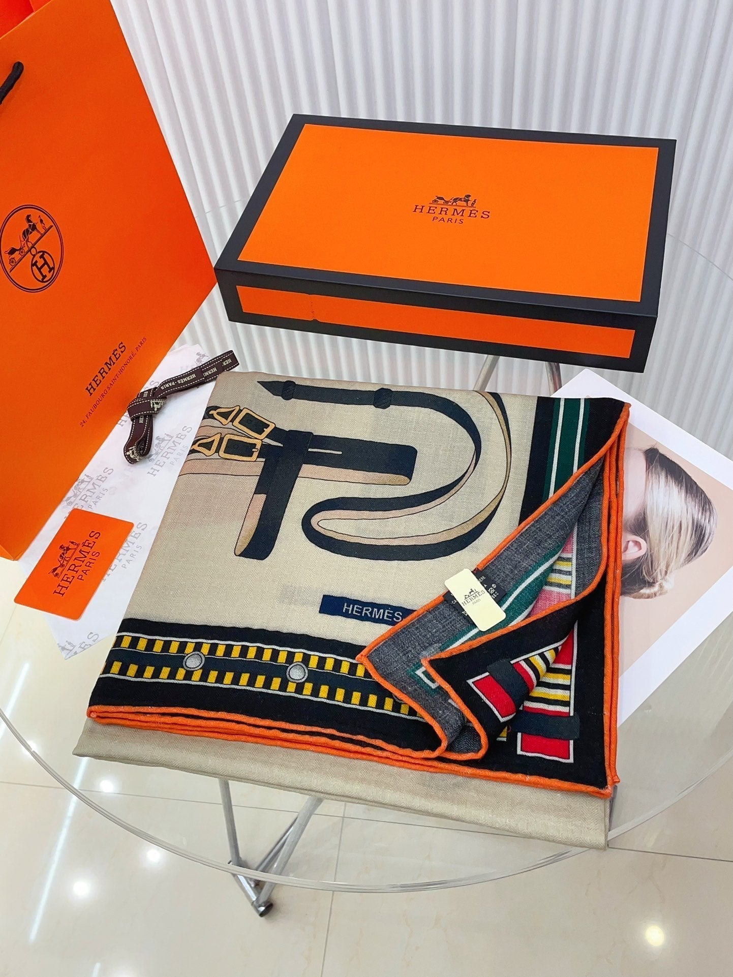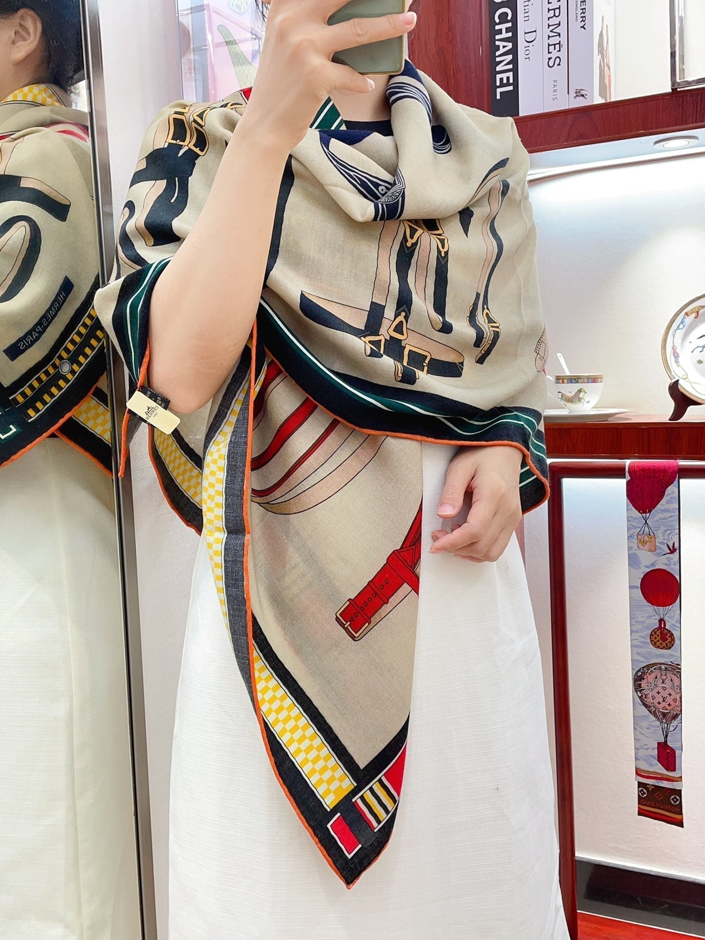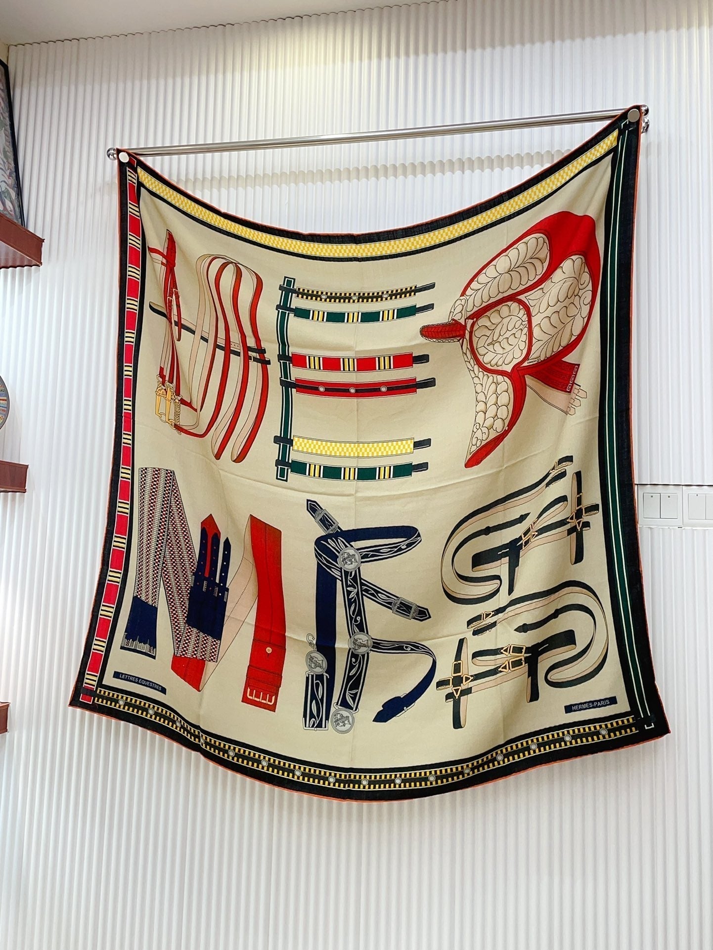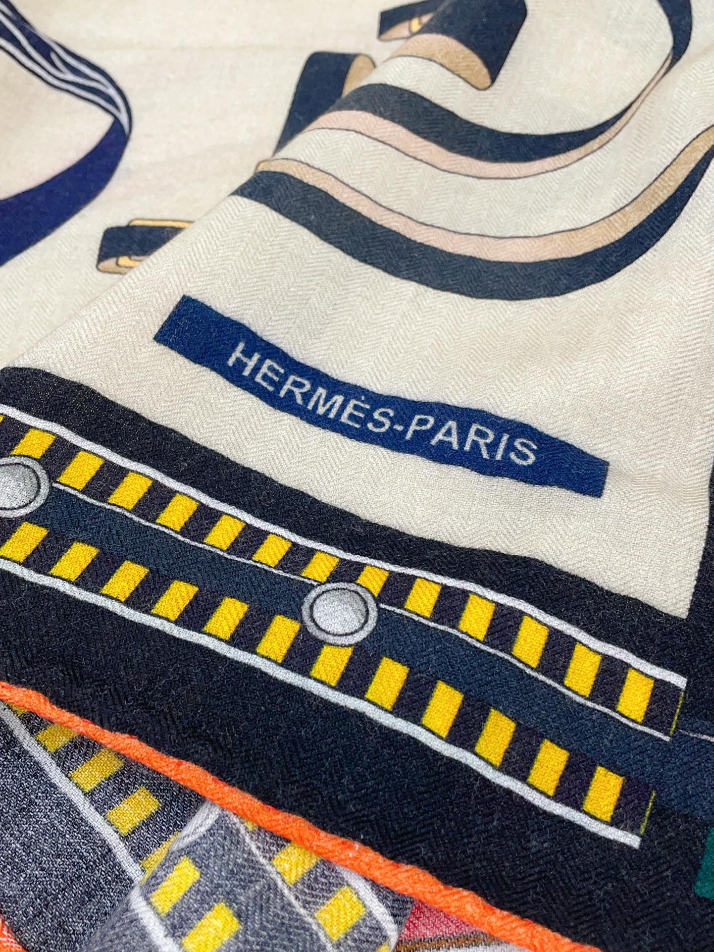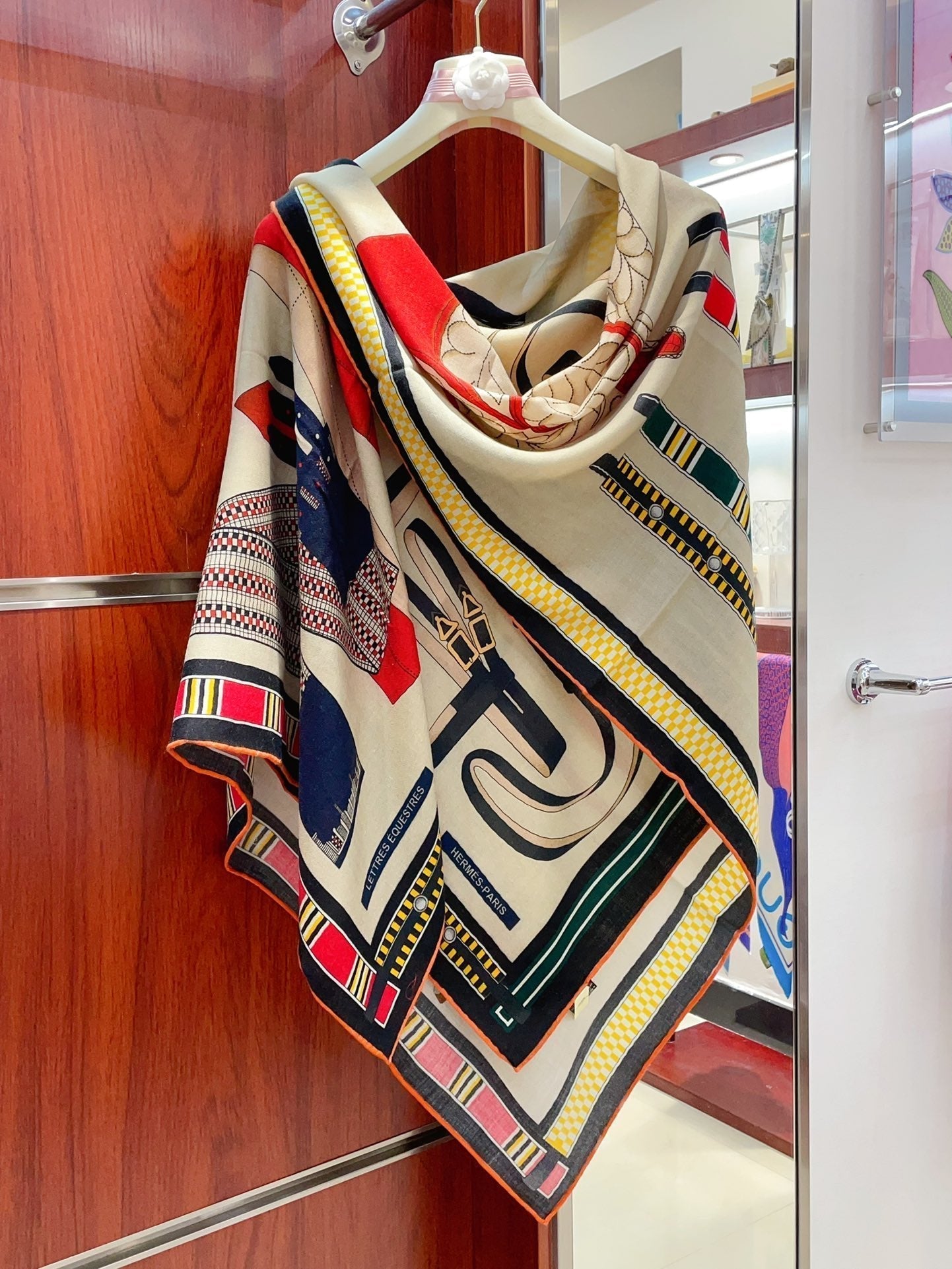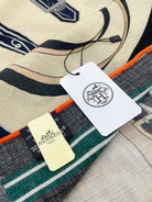 HM Lettres Equestre Scarf 140 CM In White Colorful Cashmere And Silk 359399