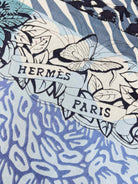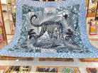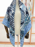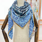 Jungle Love Stamped Scarf 140 CM In Blue Colorful Cashmere And Silk 210984