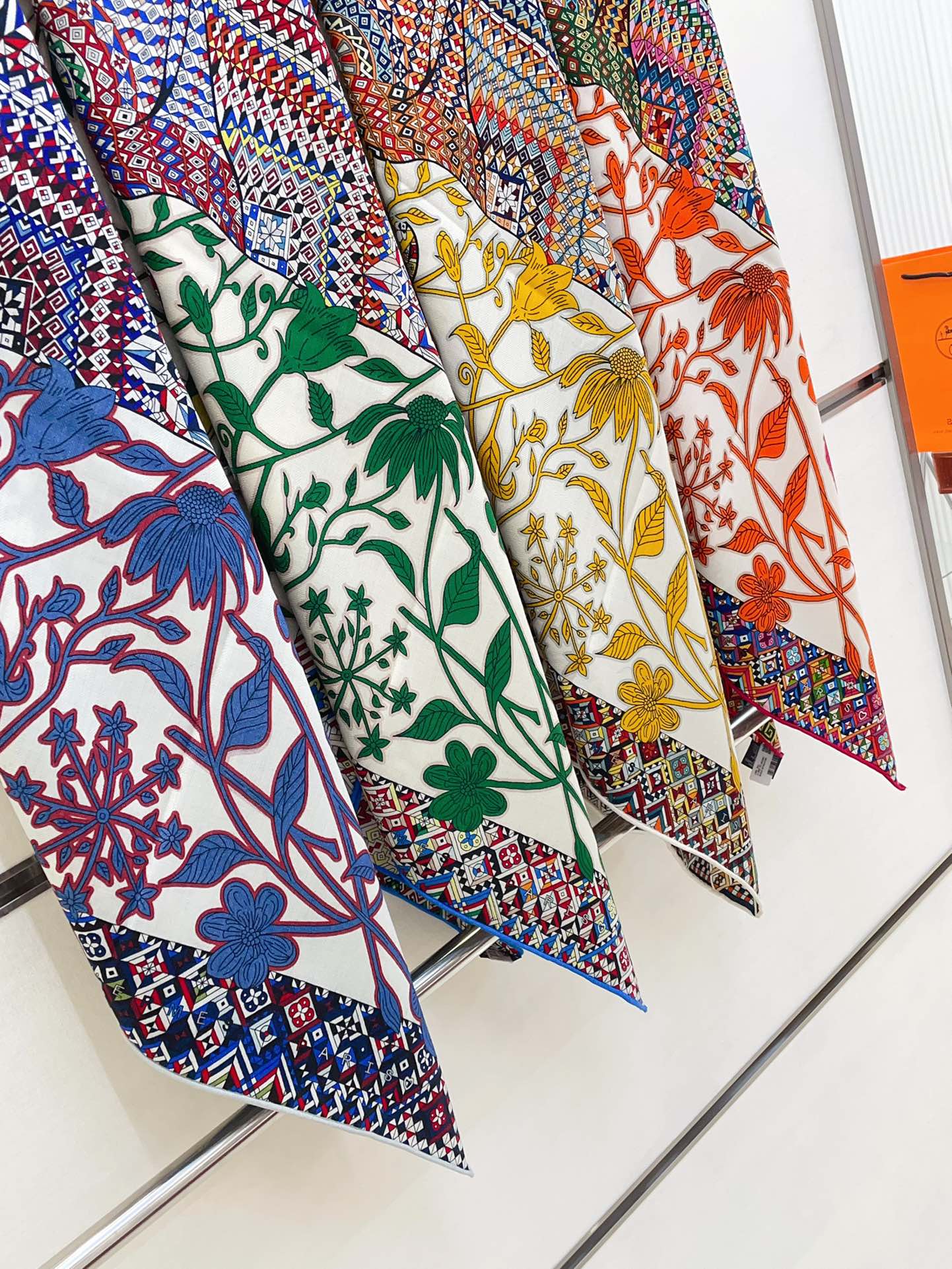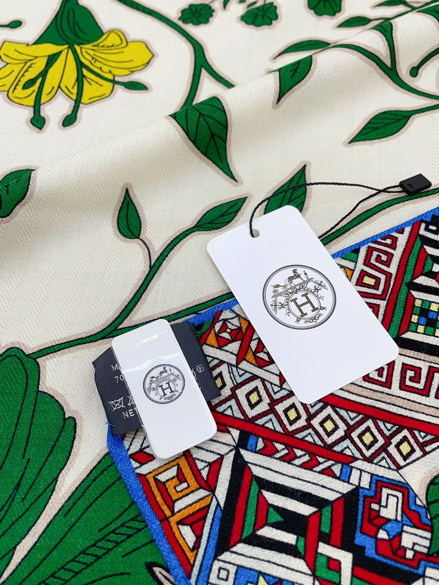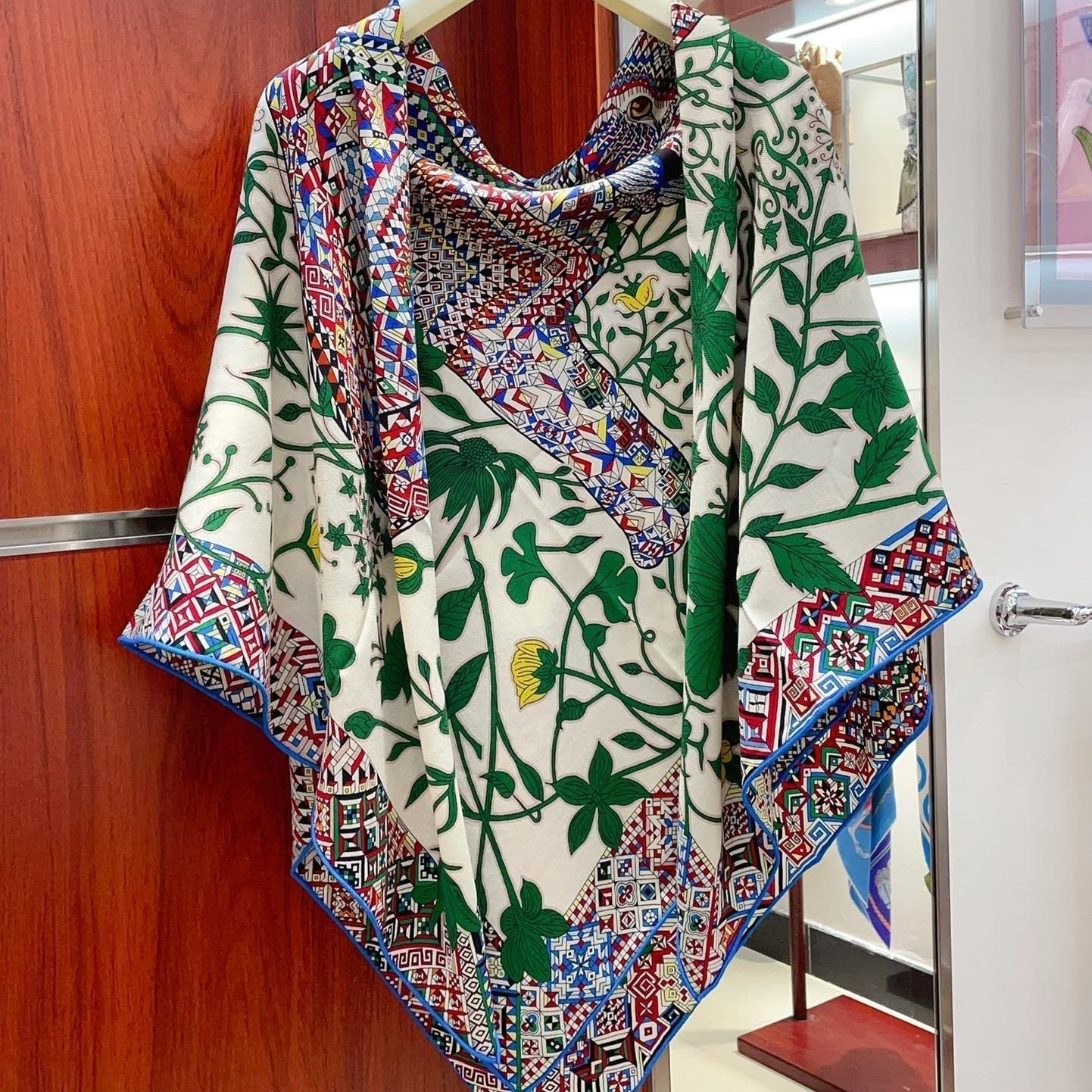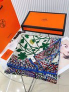 Le Jaguar Et Le Colibri Shawl 135 CM Green Colorful Cashmere And Silk 281676