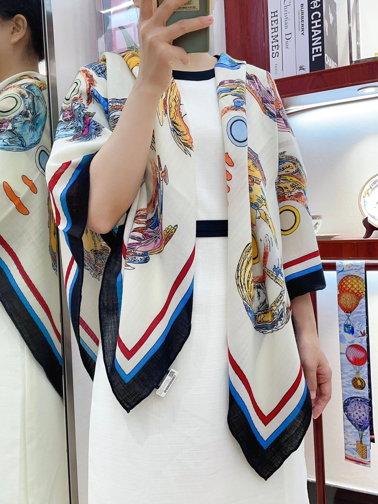 Les Anamorphoses Scarf 140 CM In White Cashmere And Silk 269265