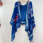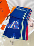 Les Sangles En Finesse Rectangle Scarf 180 CM In Dark Blue Colorful Cashmere And Silk 373657