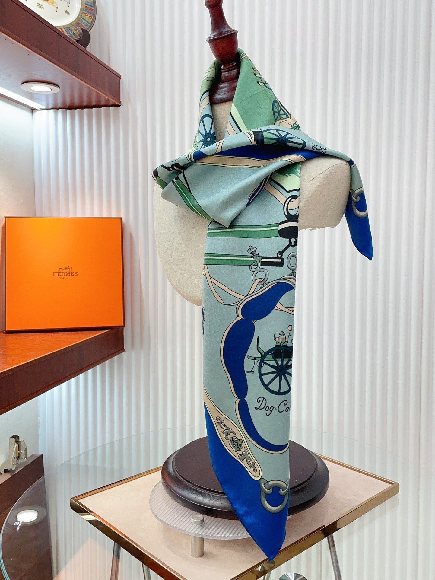 Palonniers scarf 90 CM In Light Turquoise Colorful Silk Twill 321912