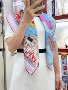 Parade Scarf 90 CM In Light Blue Colorful Silk Twill 310305