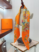 Planifleurs scarf 90 CM In Orange Colorful Silk Twill 249919