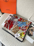 Retourala Nature Hermes Scarf 140 CM White Black Colorful Silk
