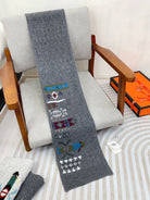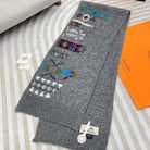 Scarf 120 CM In Grey Black Hand Woven Cashmere 401167