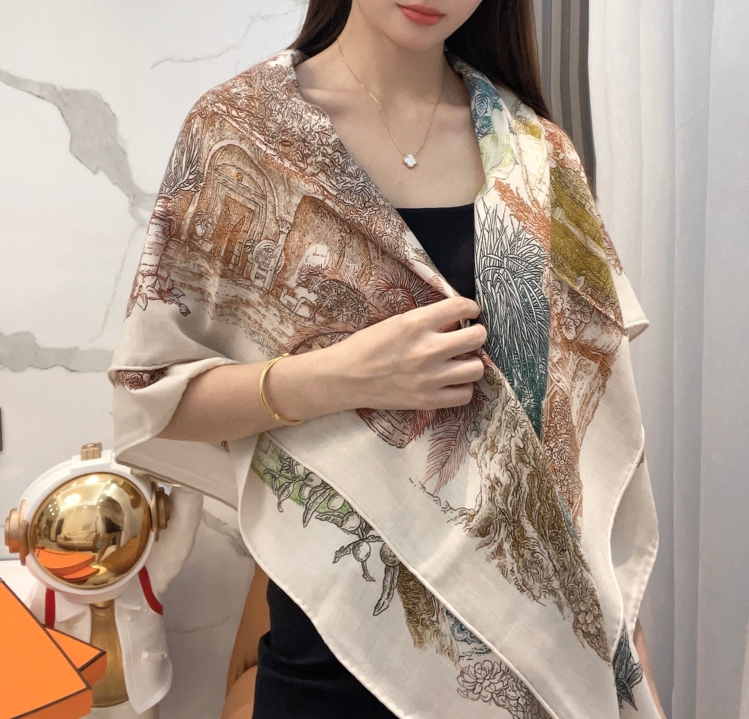 Scarf 140 CM Brown Colorful Cashmere And Silk 394551
