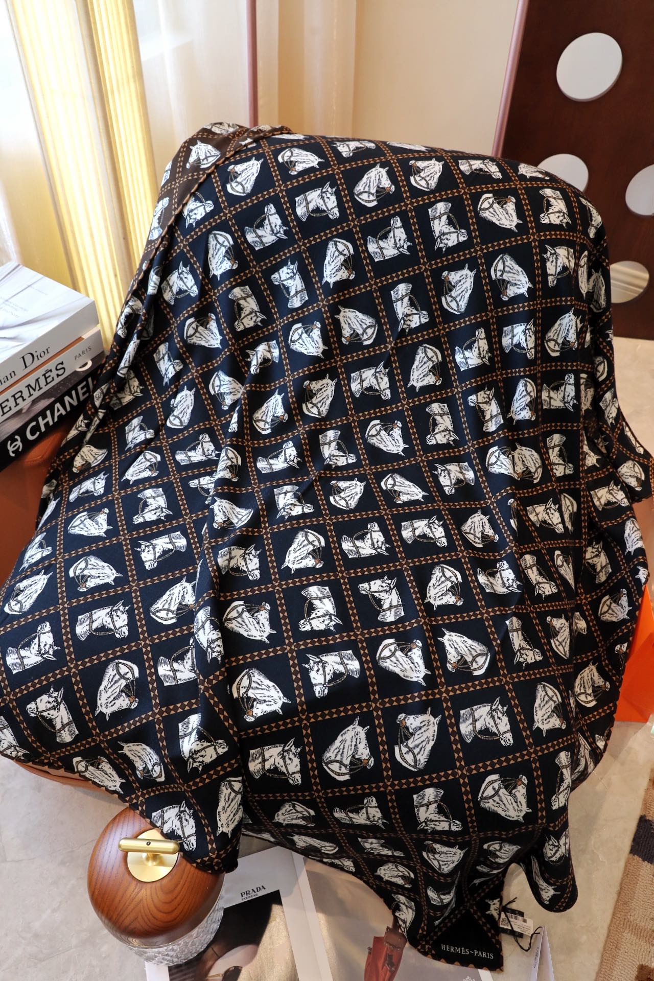 Scarf 140 CM In Black Mix White Cashmere And Silk 335765