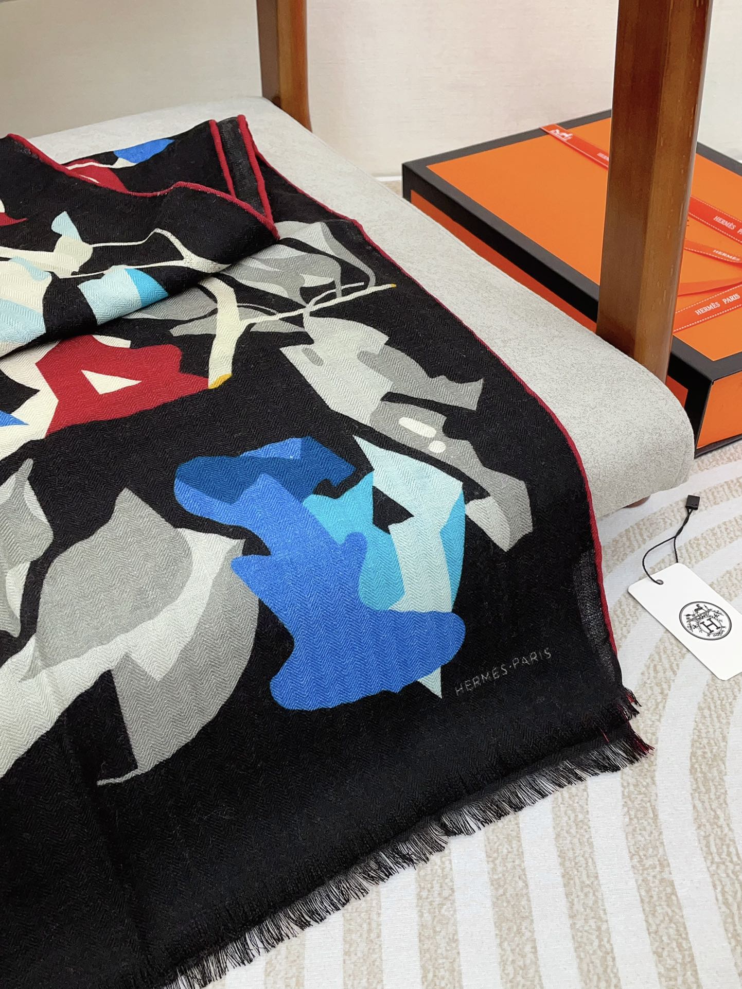 Scarf 180 CM Black Colorful Mashmere And Silk 403888