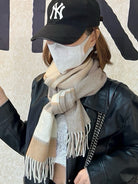 SCARF 180 CM IN KHAKI BROWN MIX WHITE CASHMERE 399872