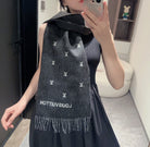 SCARF 190 CM IN BLACK CASHMERE WITH WHITE LOGO 396326