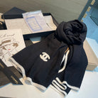 SCARF 200 CM IN BLACK CASHMERE AND WHITE LOGO 401978