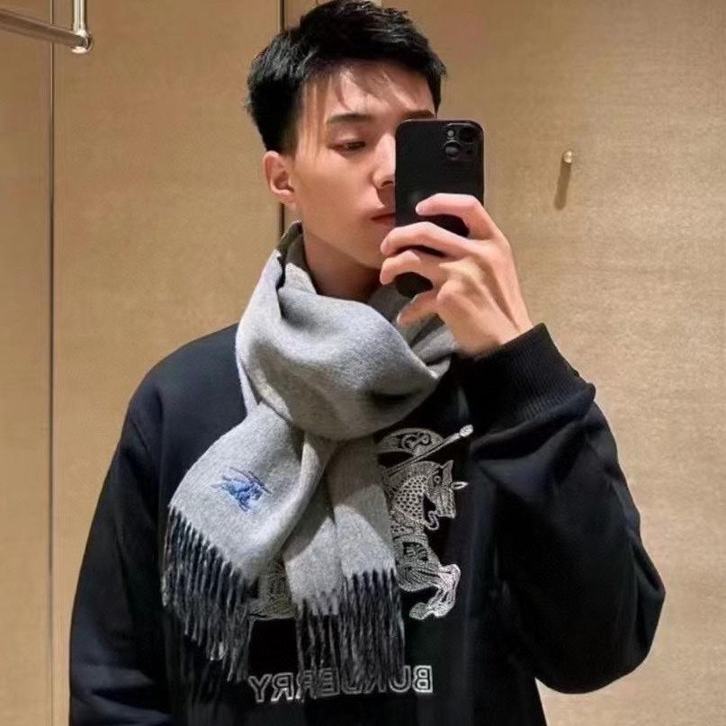 CASHMERE CHECK SCARF BLUE MIX LIGHT GRAY 407521
