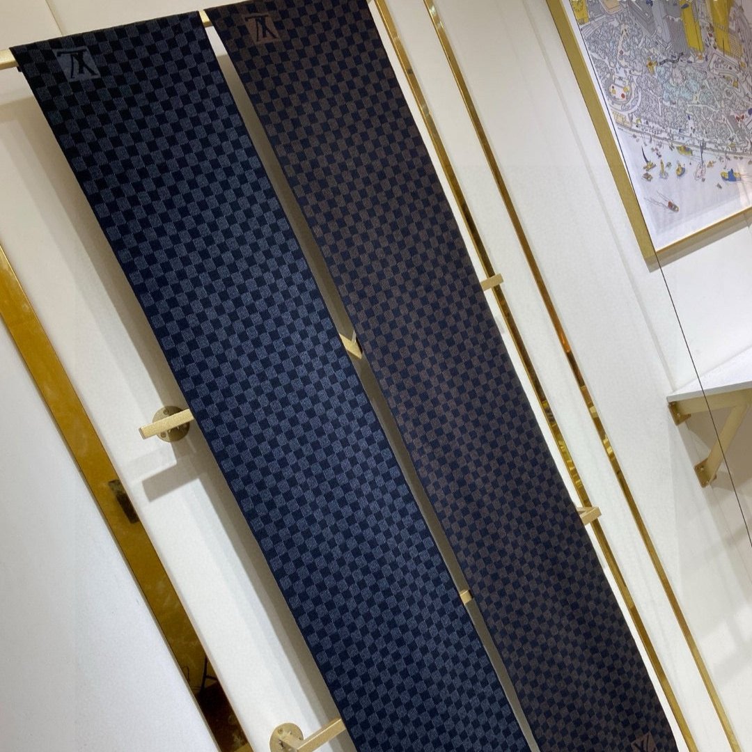 DAMIER SCARF 180 CM IN MIDNIGHT BLUE MIX GRAY CASHMERE 388316