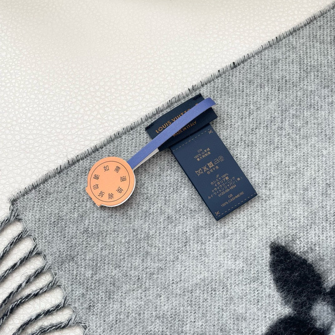 MONOGRAM 140 CM SQUARE SCARF IN STEEL GRAY MIX WHITE CASHMERE 391109