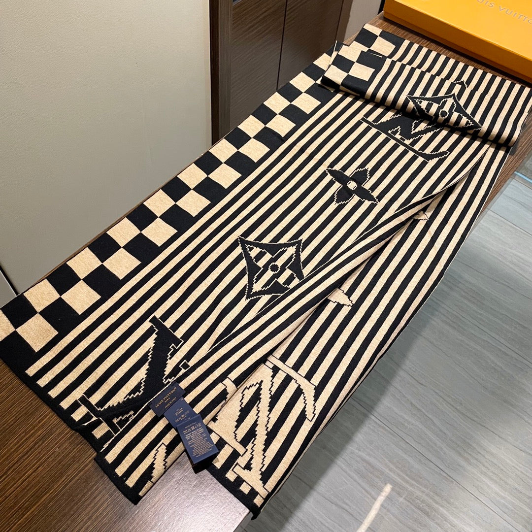 DAMIER SCARF 200 CM IN BLACK MIX TAN BEIGE CASHMERE 388194