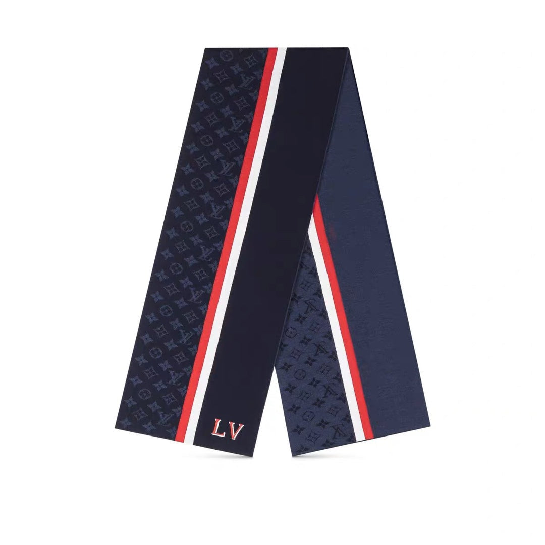 MONOGRAM SHINE SCARF 120 CM IN NAVY BLUE WOOL AND MULBERRY SILK 398196