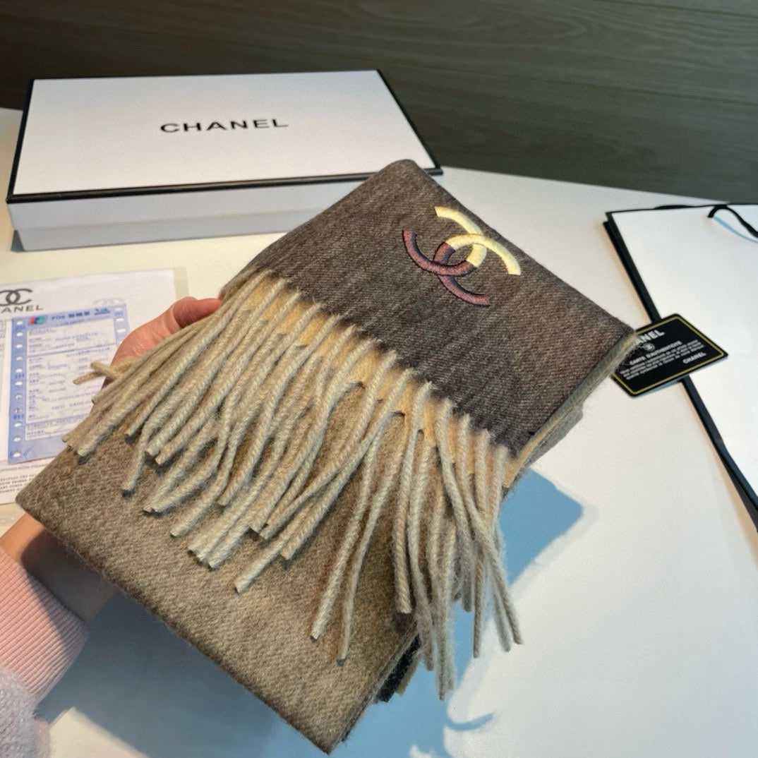 SCARF 180 CM IN KHAKI BROWN CASHMERE 389978