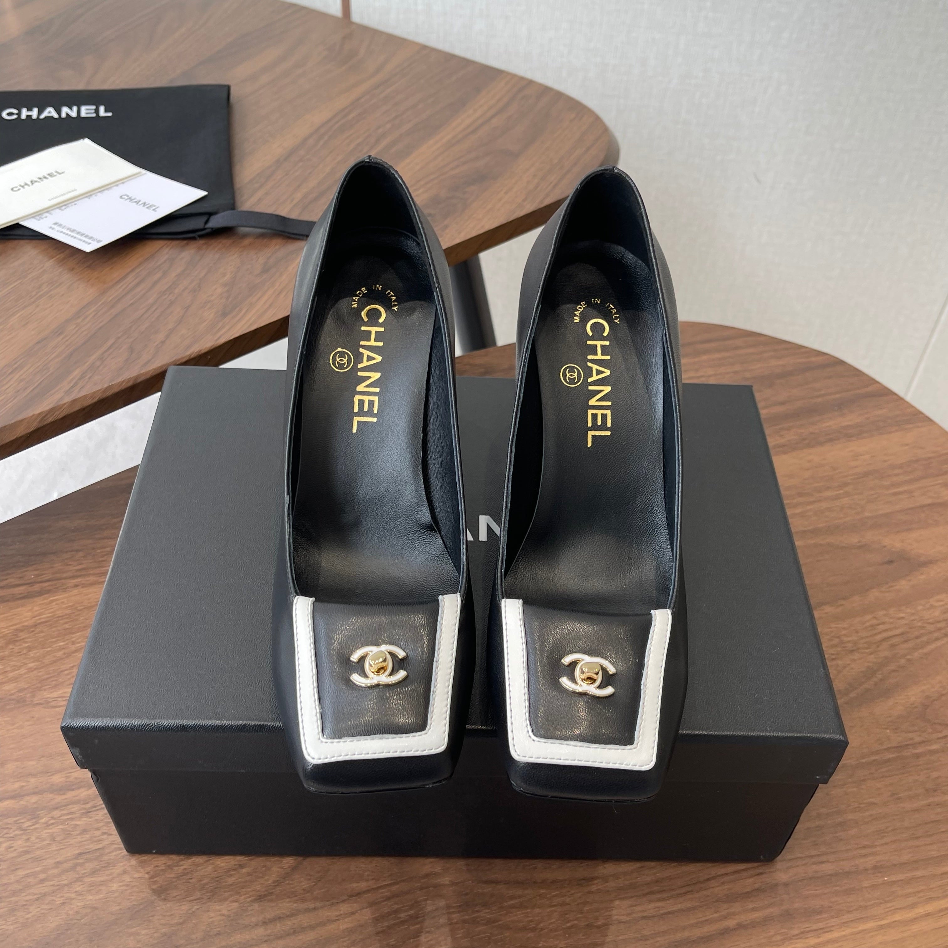 CC Coco Neige 2025/26 High Boots Black White Shearling Lambskin Patent Leather 529340