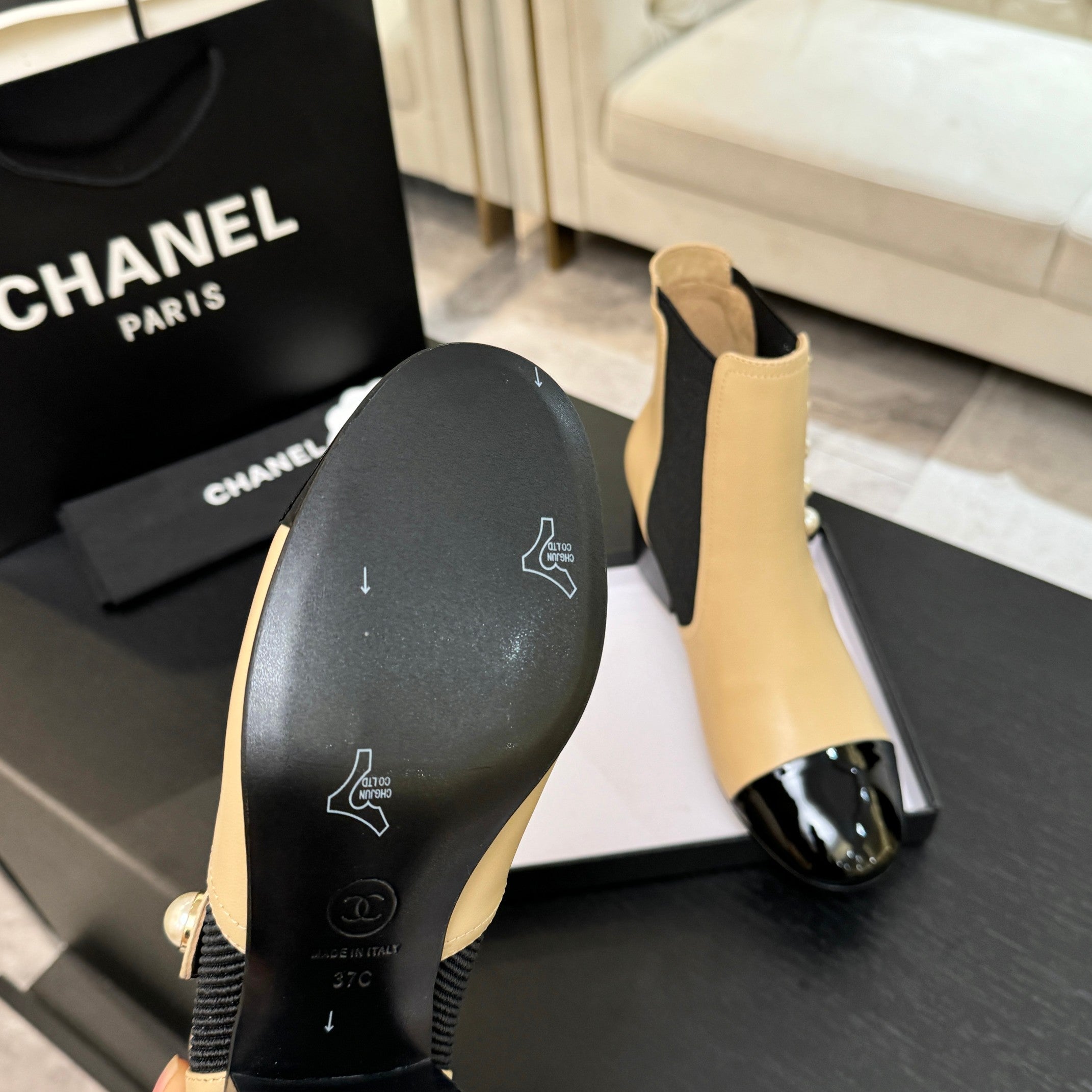 CC Coco Neige 2025/26 Low-cut Boots Beige Shearling Lambskin Patent Leather 529342