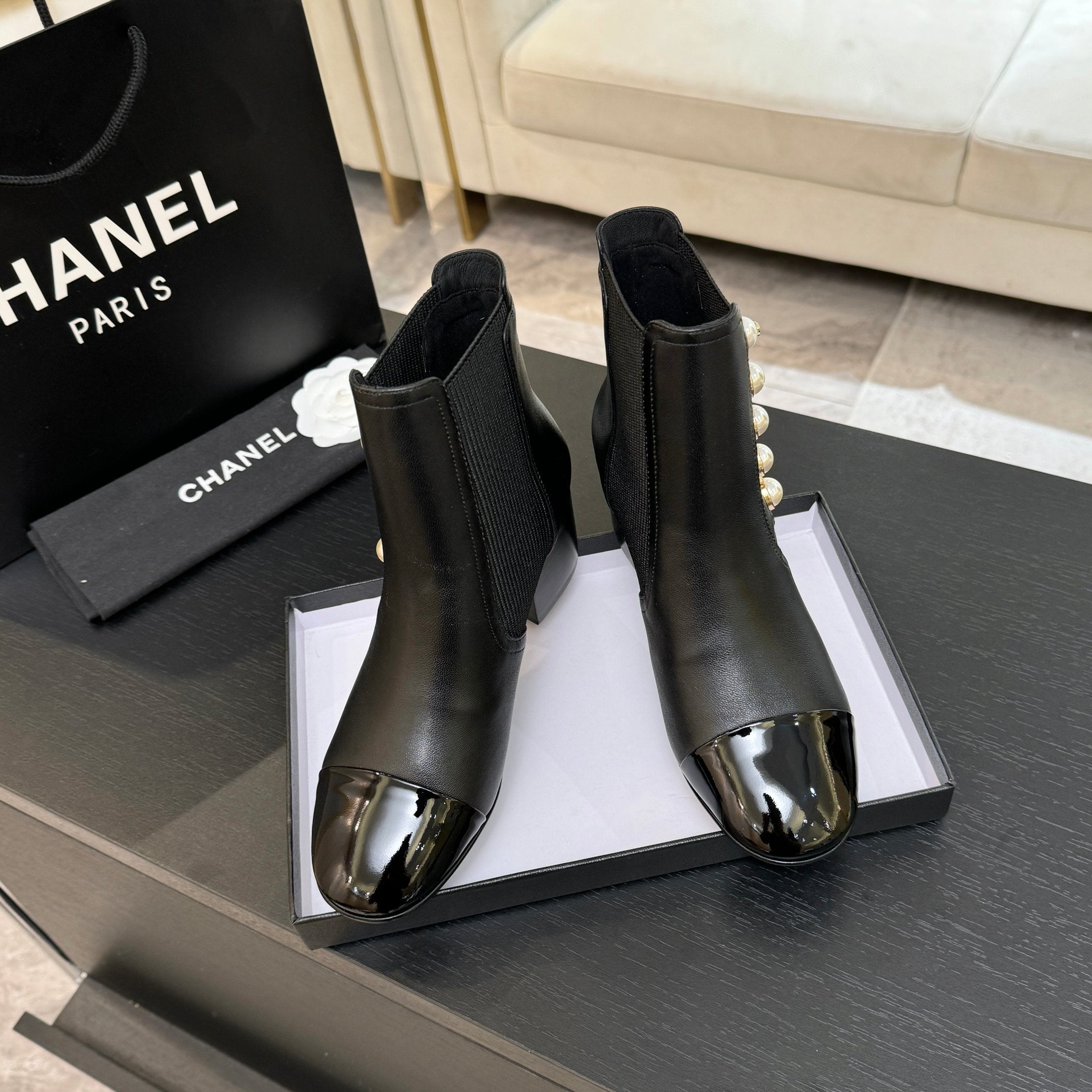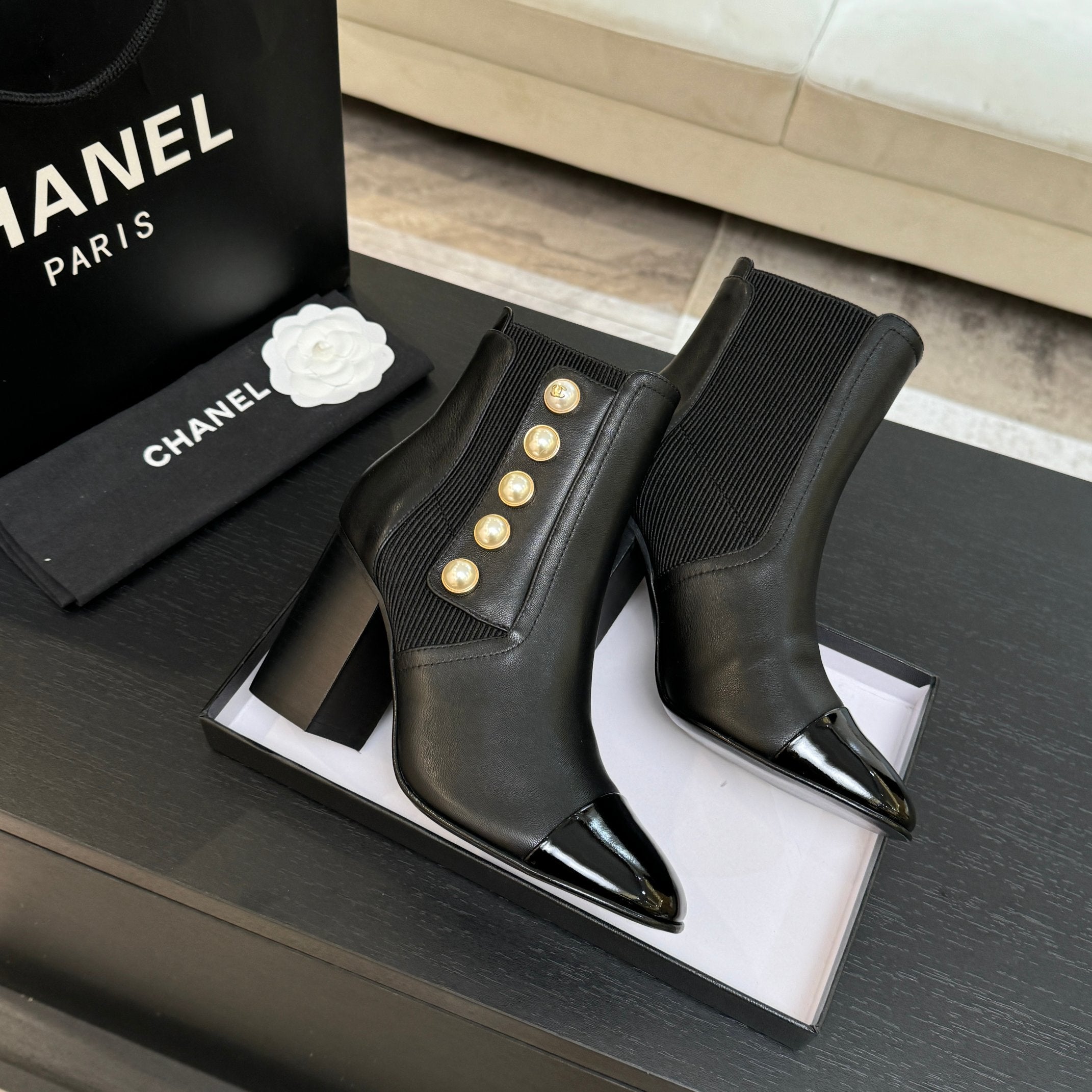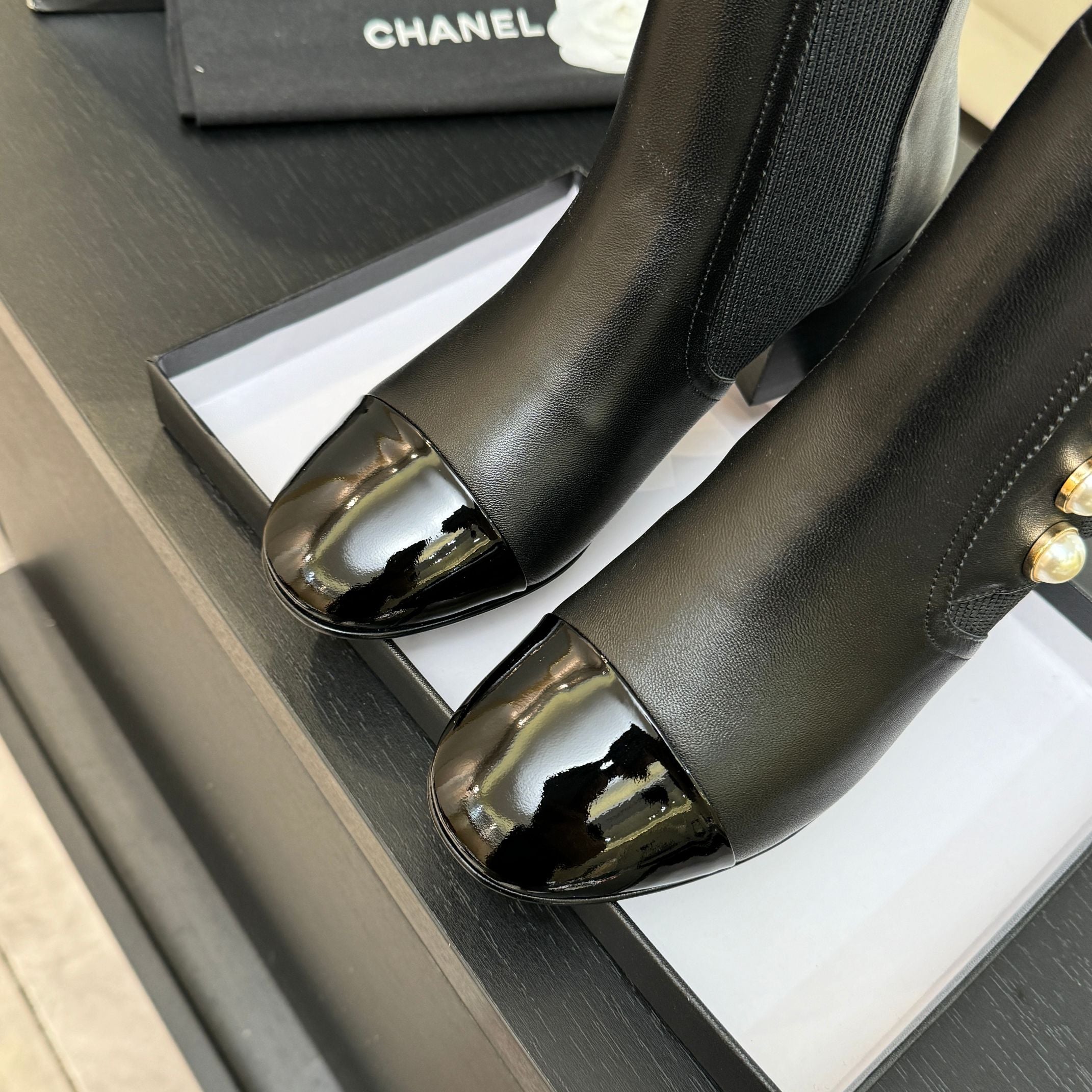 CC Coco Neige 2025/26 Low-cut Boots Black Shearling Lambskin Patent Leather 529343