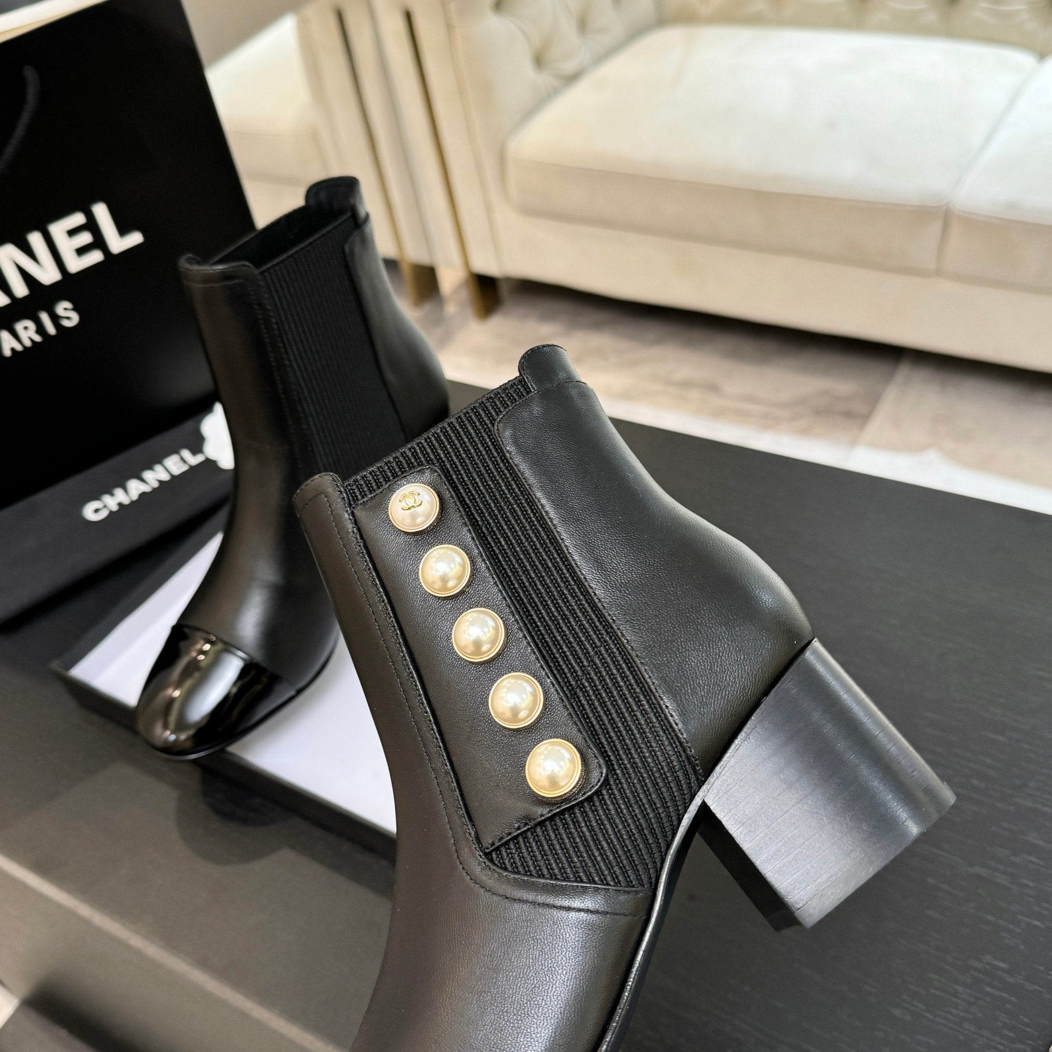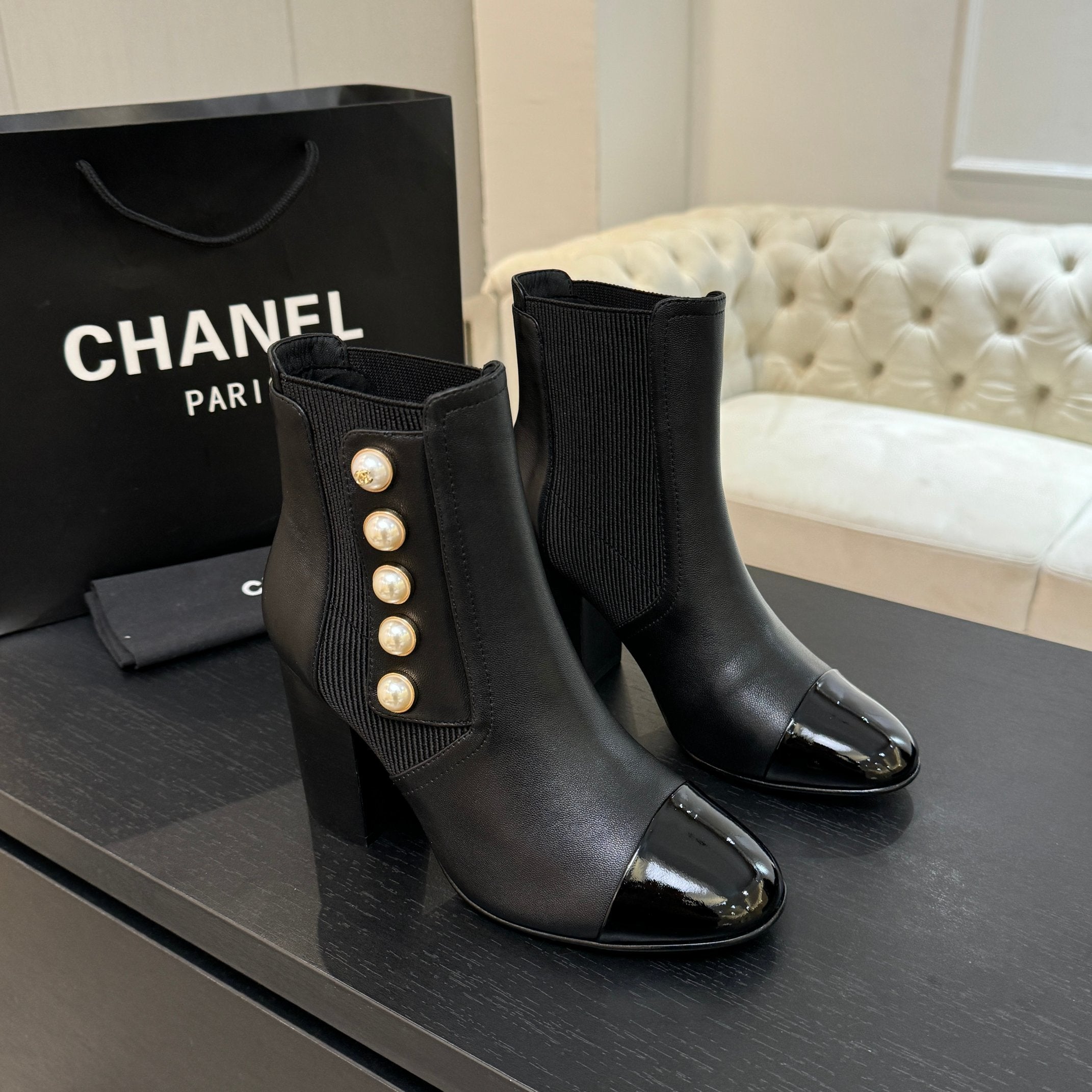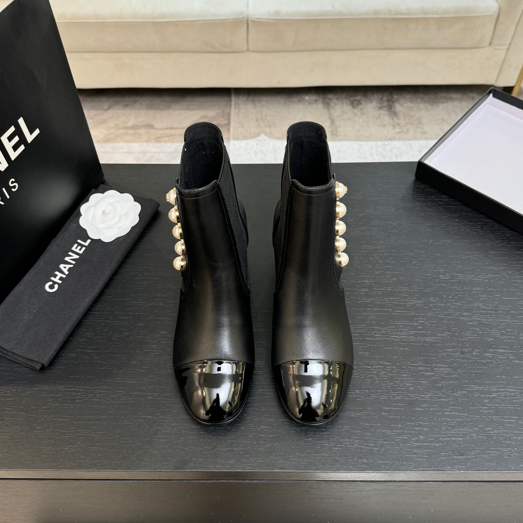 CC Coco Neige 2025/26 Low-cut Boots Black Shearling Lambskin Patent Leather 529343