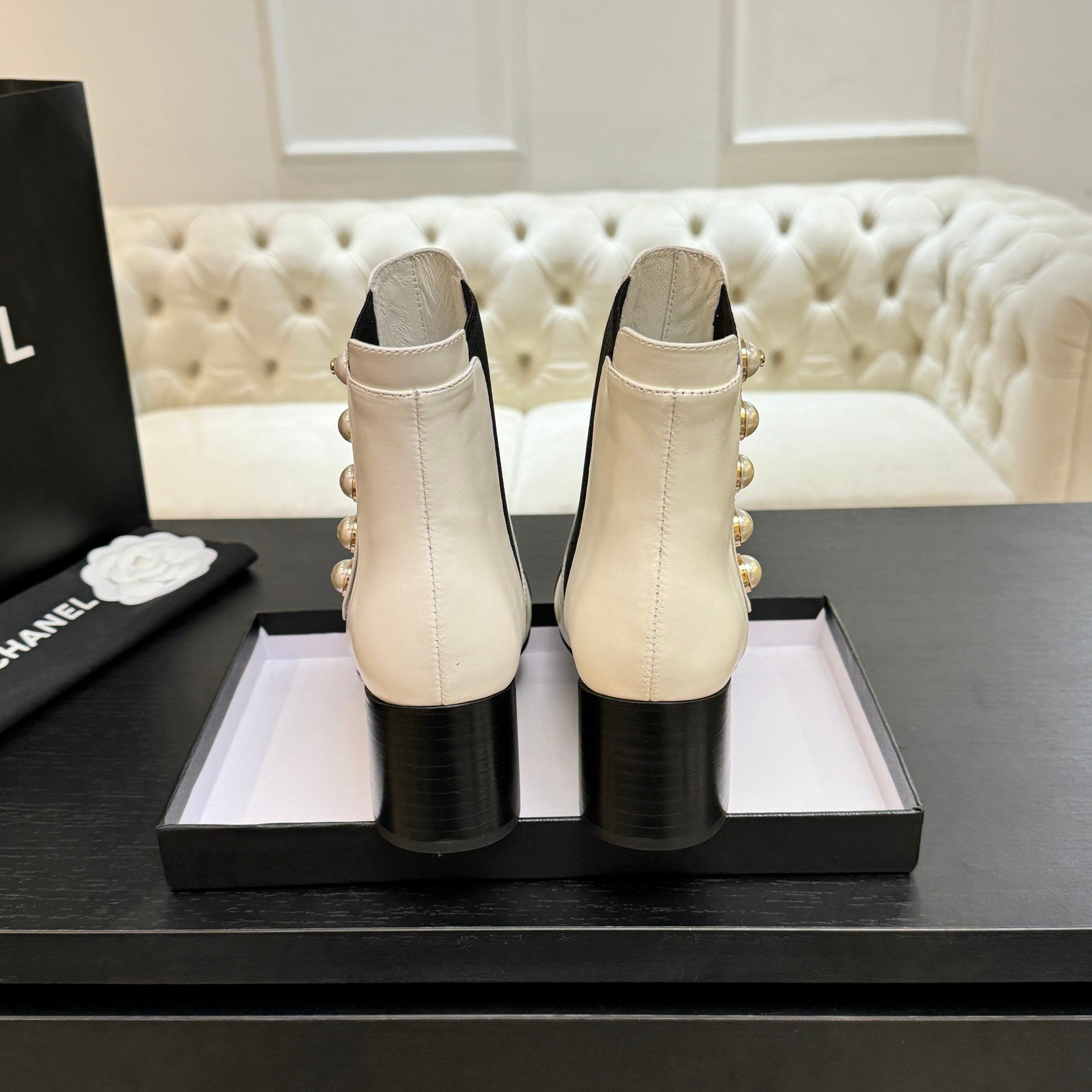CC 25K FW Ankle Boots With Pearl 60mm White Sheepskin 528387