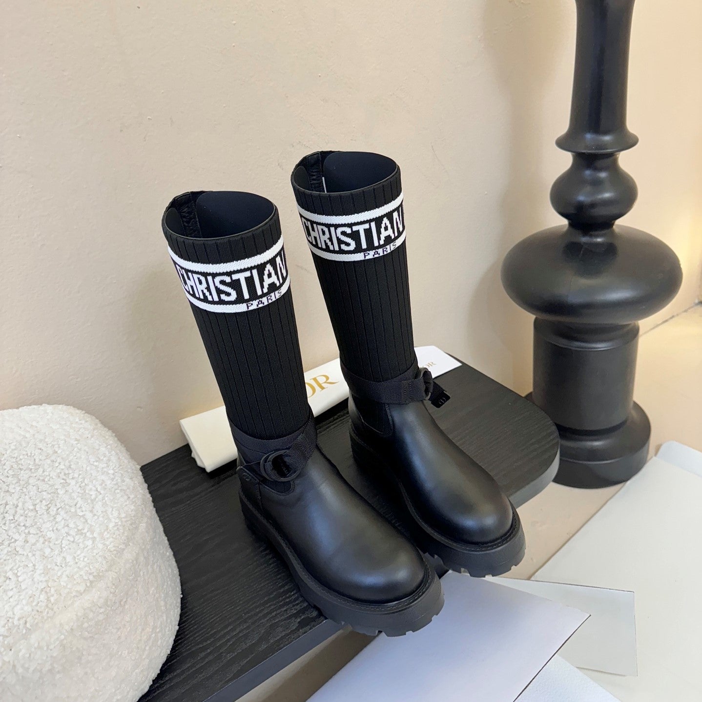 CD D-Major Boot Black White Technical Knit Calfskin 530618