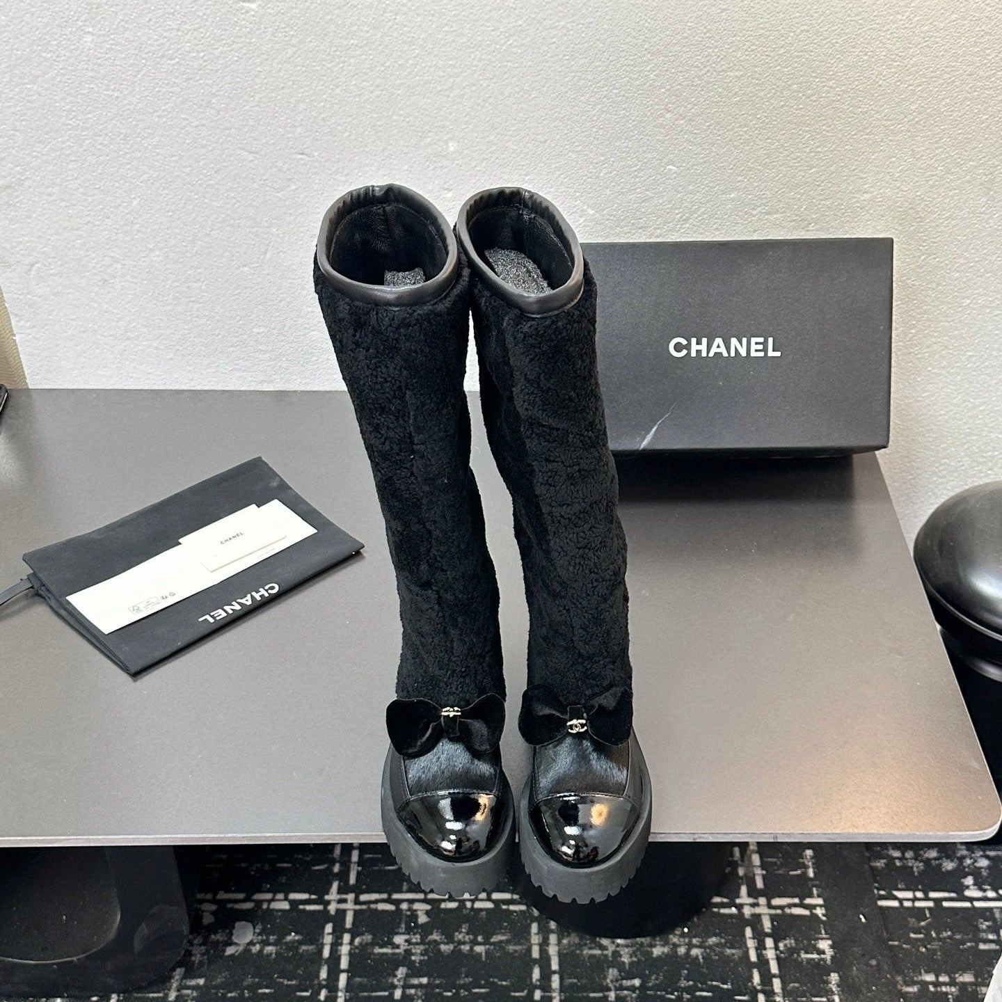 CC Coco Neige 2025/26 High Boots Black Shearling Lambskin Patent Leather 529339