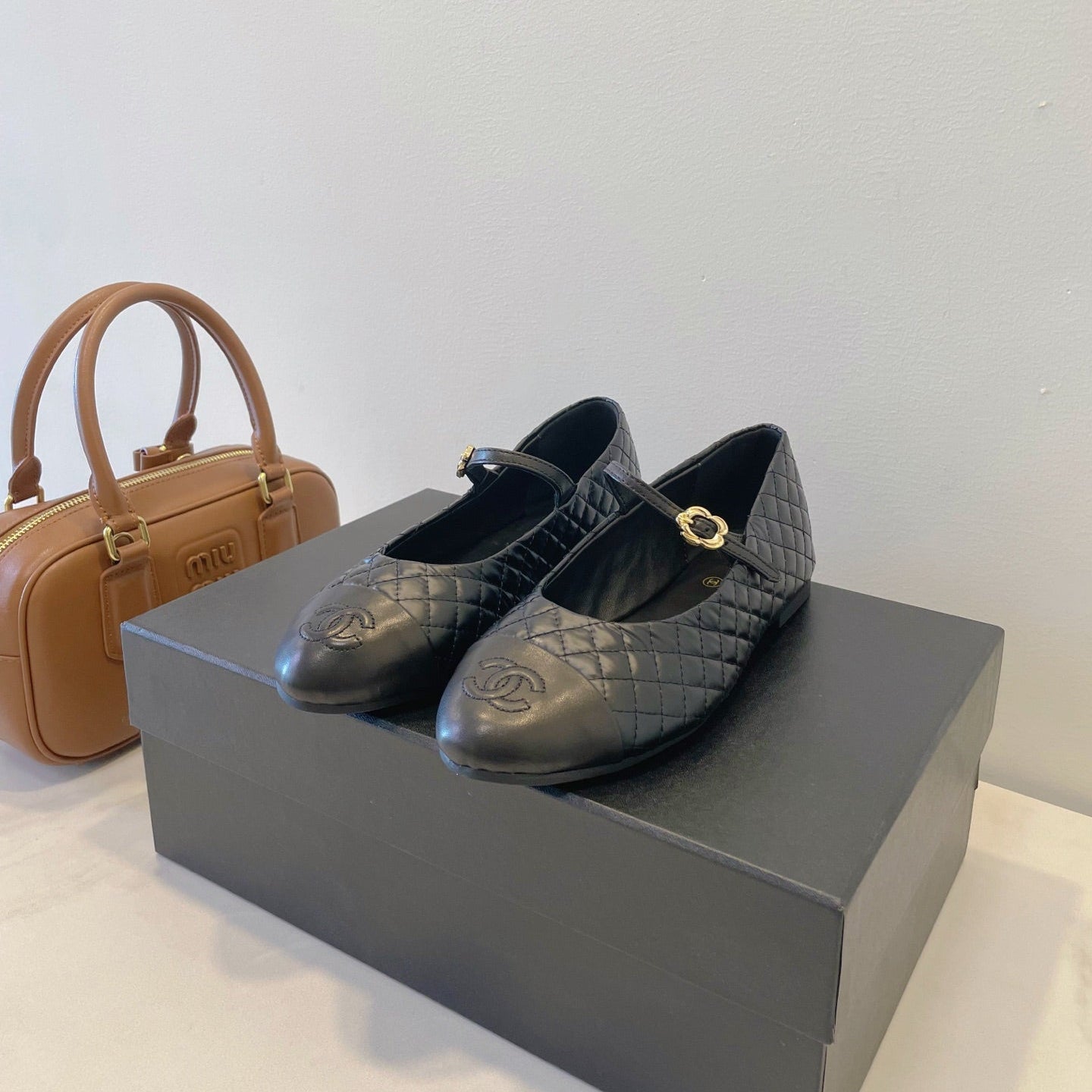 CC 25A Ballet Flat With Strap Quited Black Sheepskin 530539
