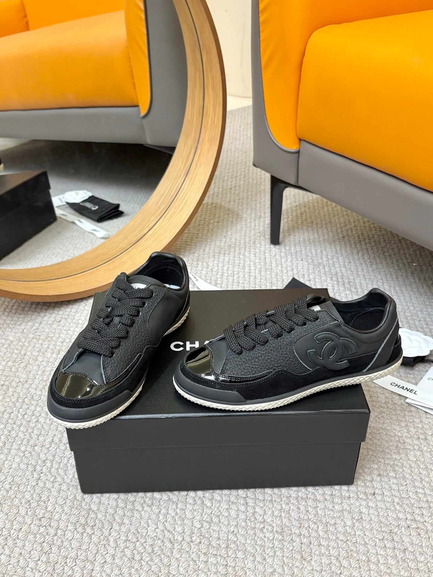 CC 25C Casual Sneakers Black Cowhide Suede Patent Leather 528156