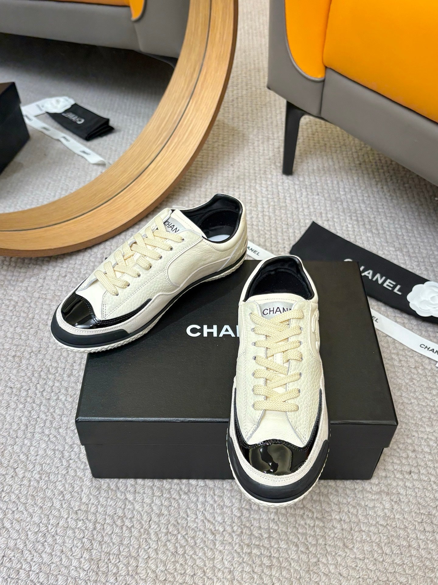 CC 25C Casual Sneakers Cream Black Cowhide Suede Patent Leather 528157