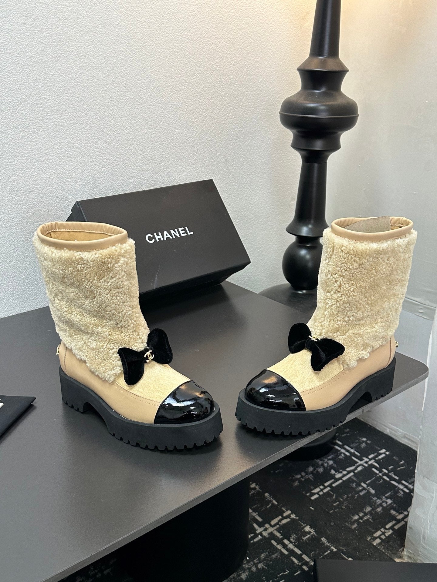 CC Coco Neige 2025/26 Low-cut Boots Beige Shearling Lambskin Patent Leather 529342