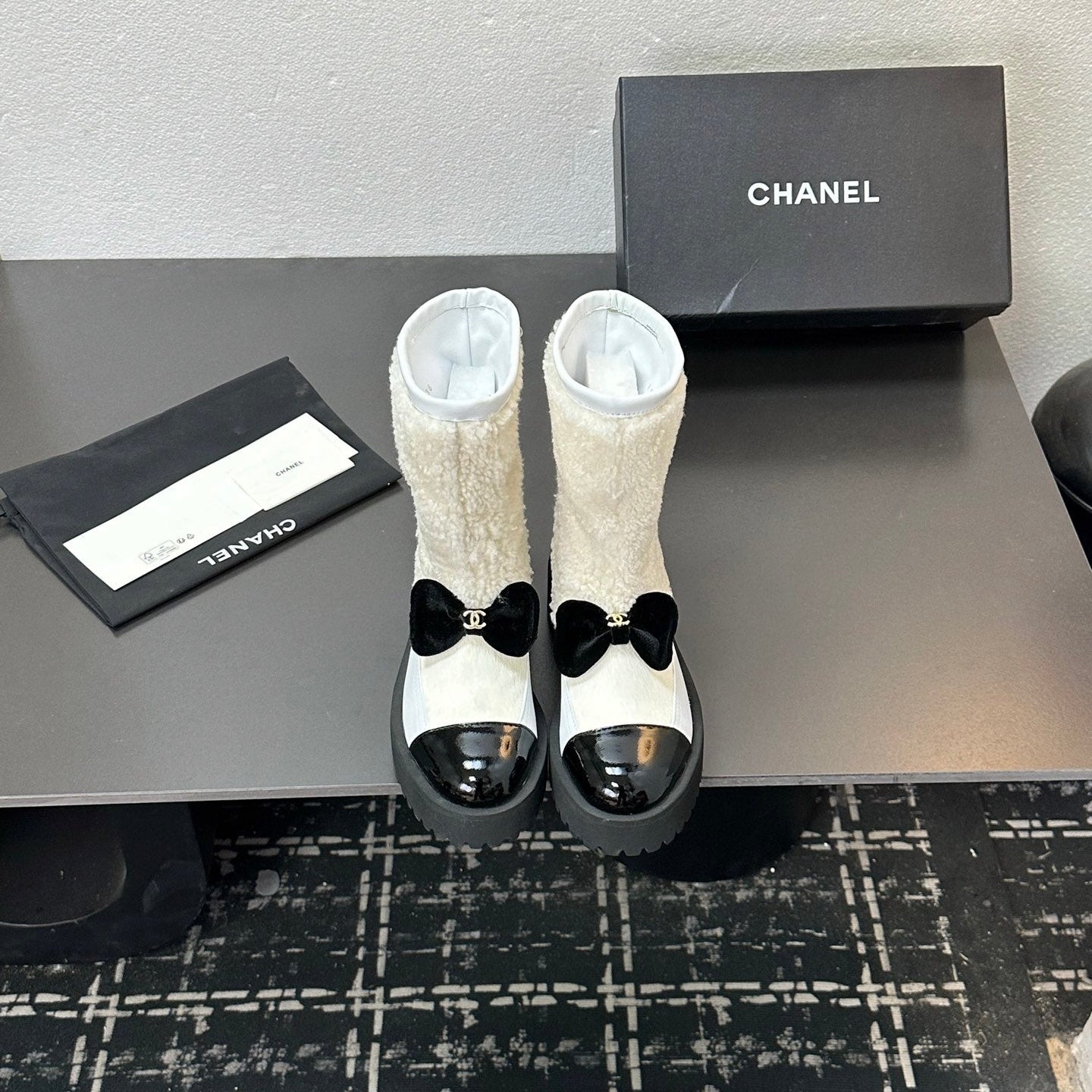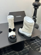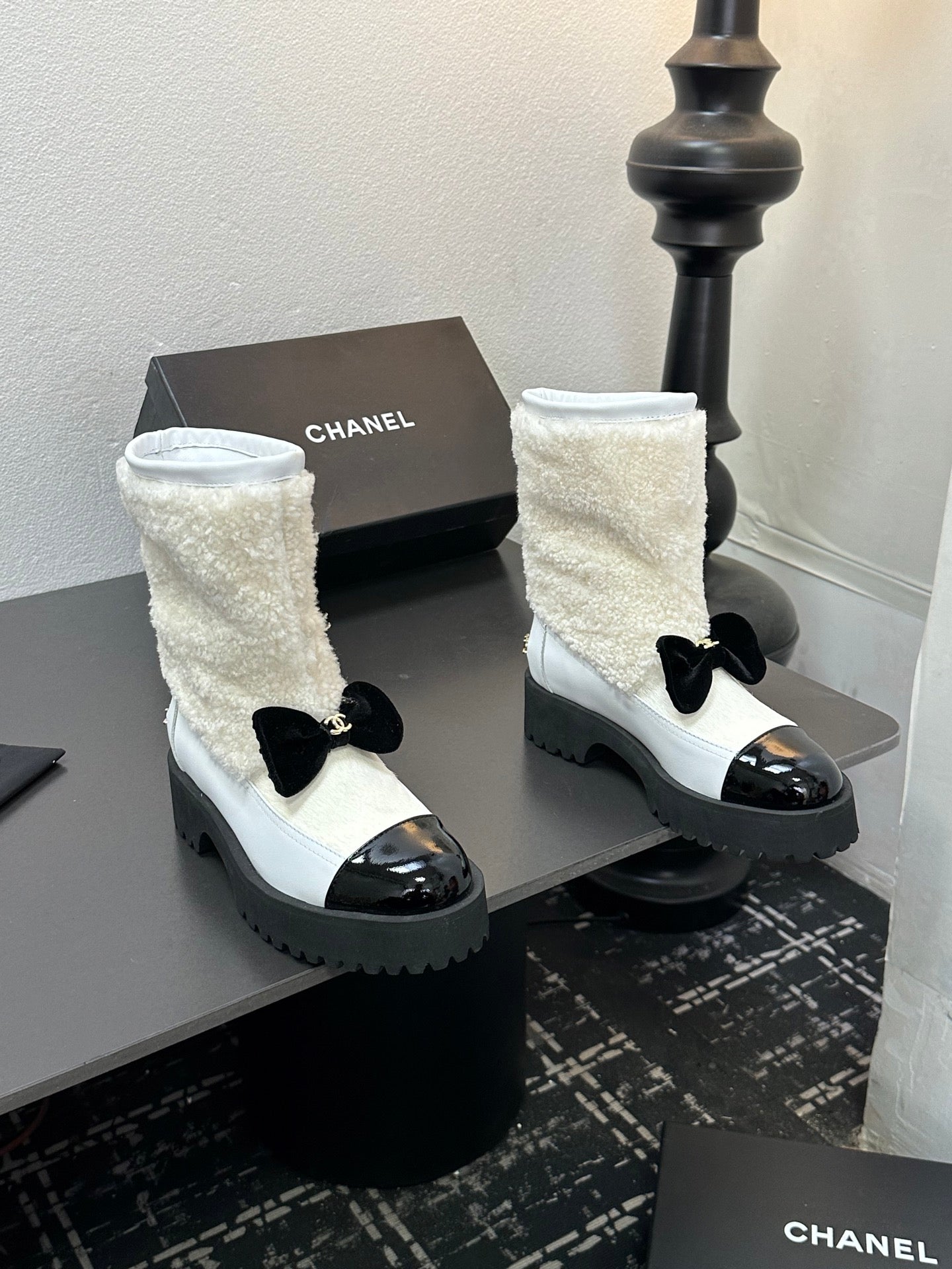 CC Coco Neige 2025/26 Low-cut Boots Black White Shearling Lambskin Patent Leather 529341